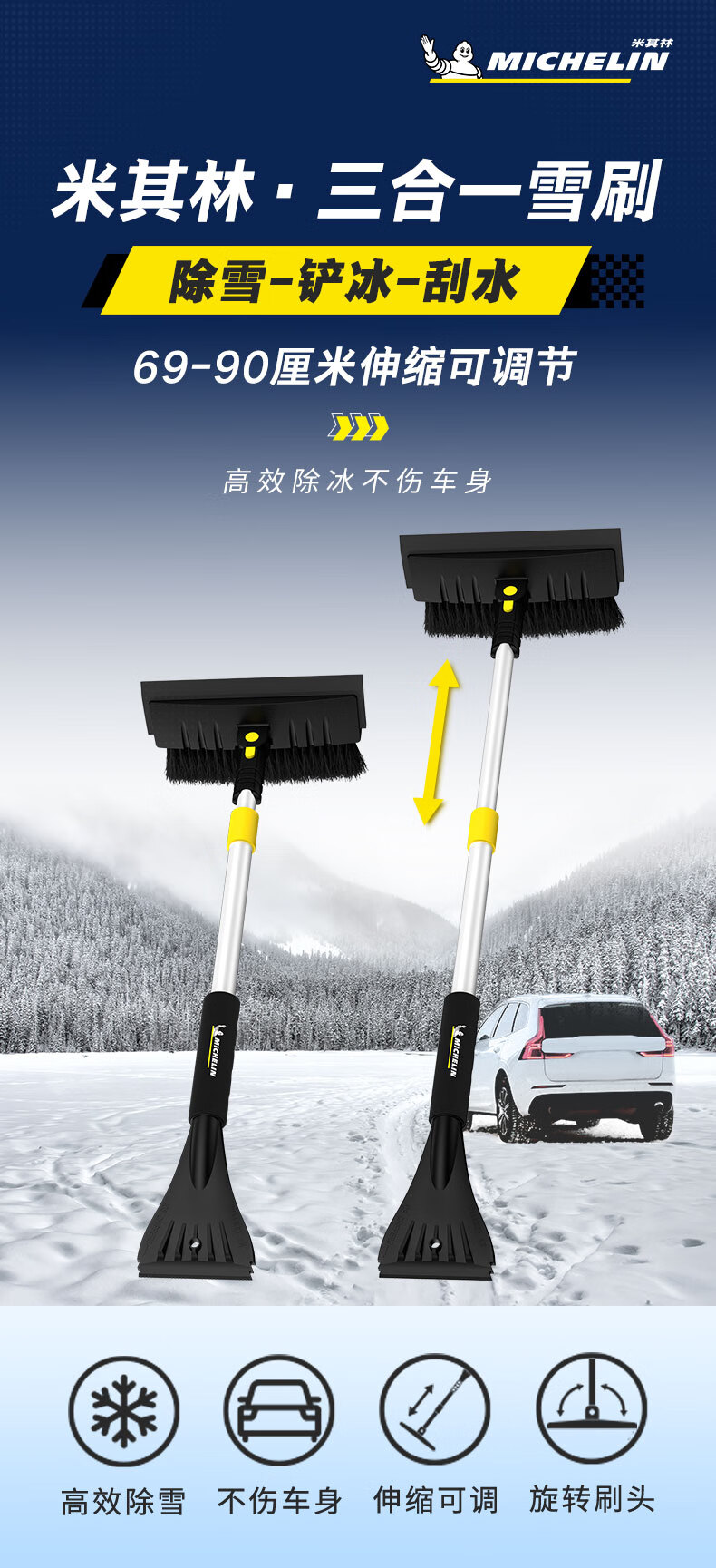 Michelin (MICHELIN) (MICHELIN) car tool three-in-one snow removal shovel with 69-90cm defrosting ice shovel and snow scraper M2590