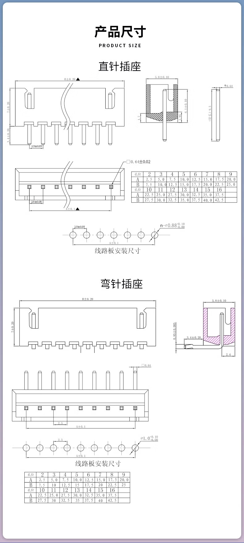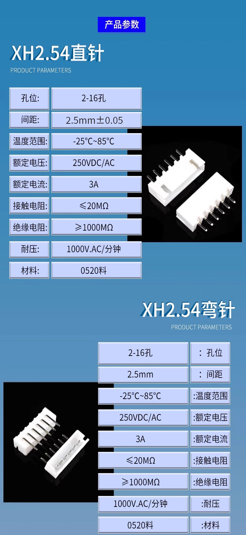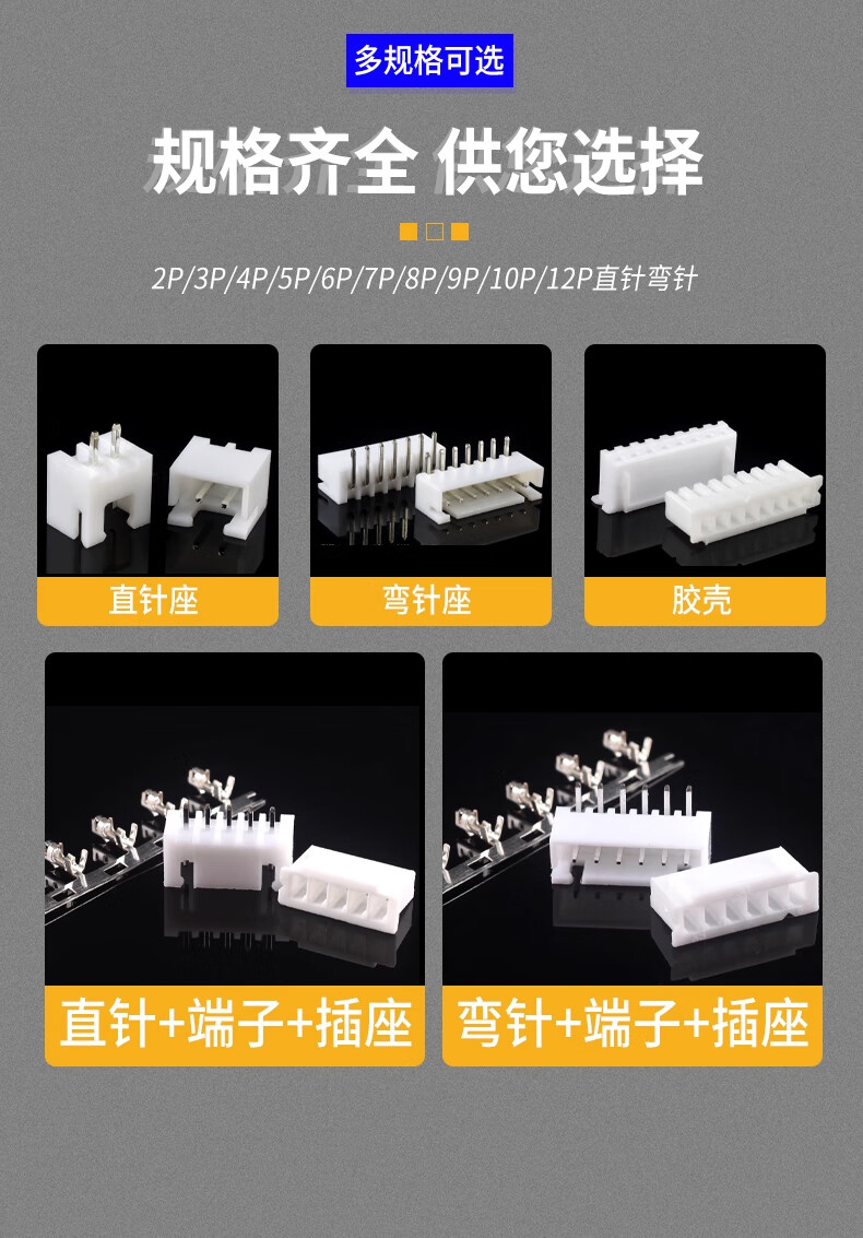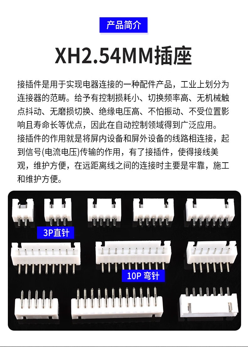 ZAVE XH2.54mm socket straight pin curved needle plastic shell