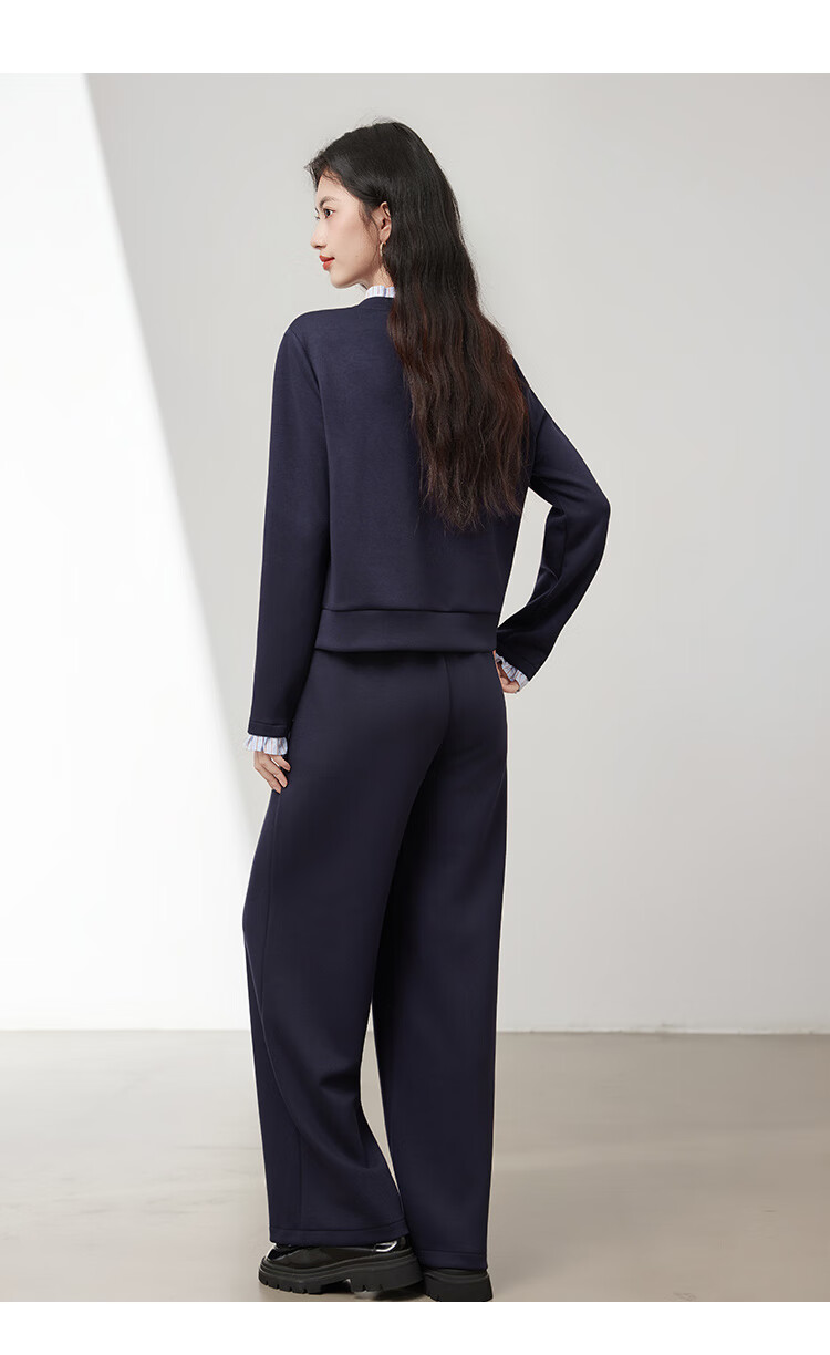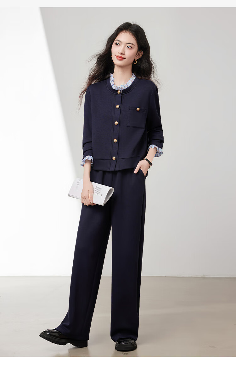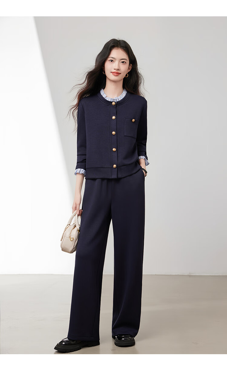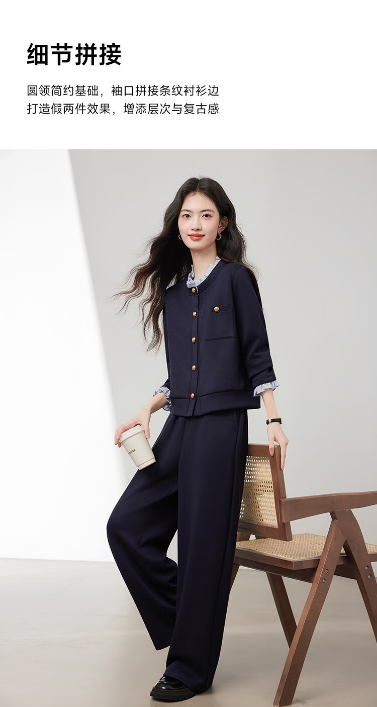 Xinfeiyu contrasting color splicing T-shirt casual two-piece set for women 2025 autumn new design sports style fashion suit