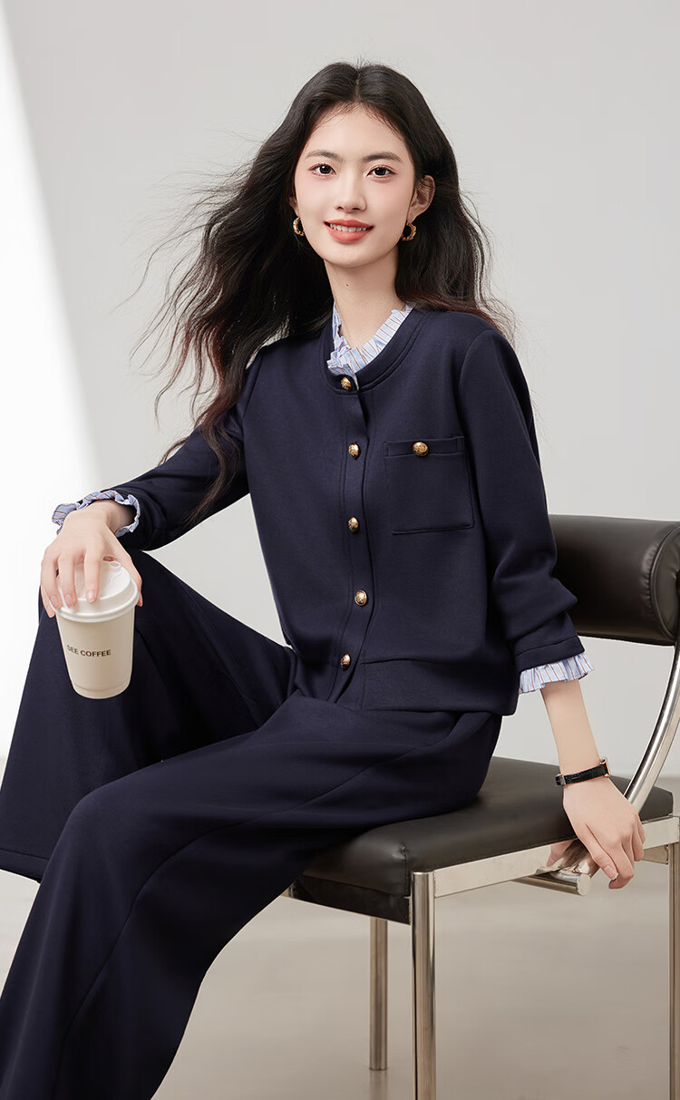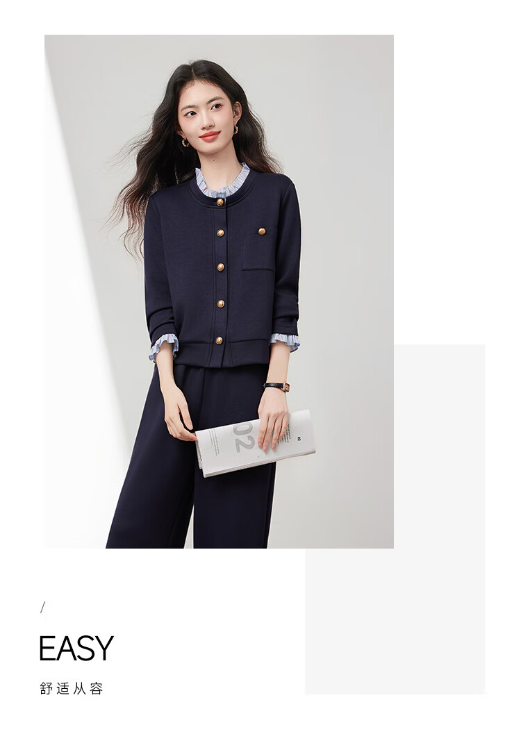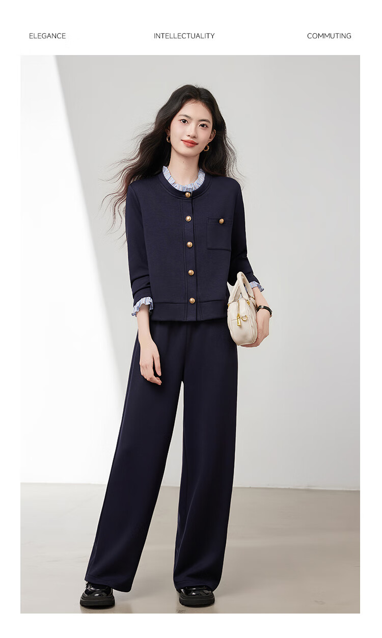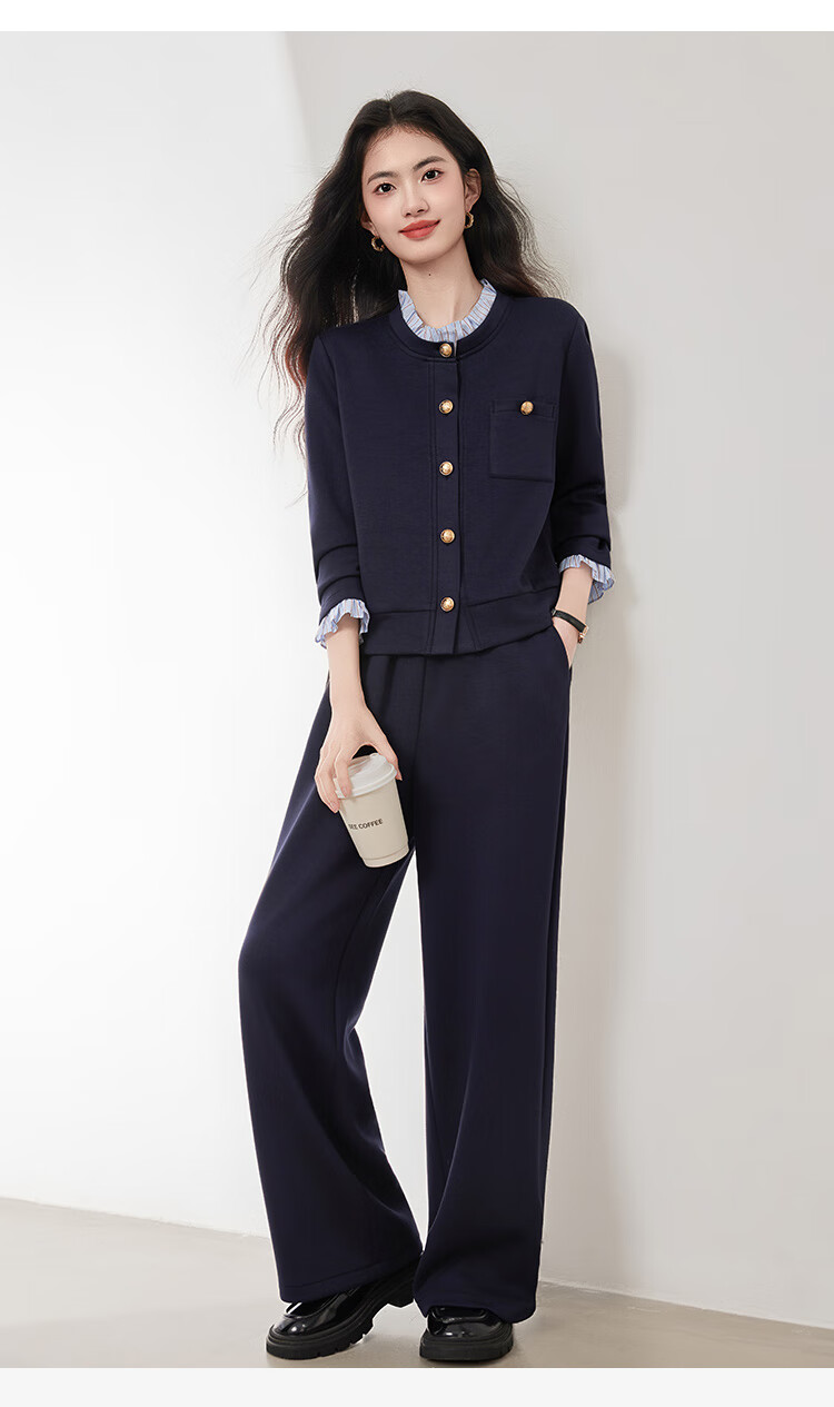 Xinfeiyu contrasting color splicing T-shirt casual two-piece set for women 2025 autumn new design sports style fashion suit