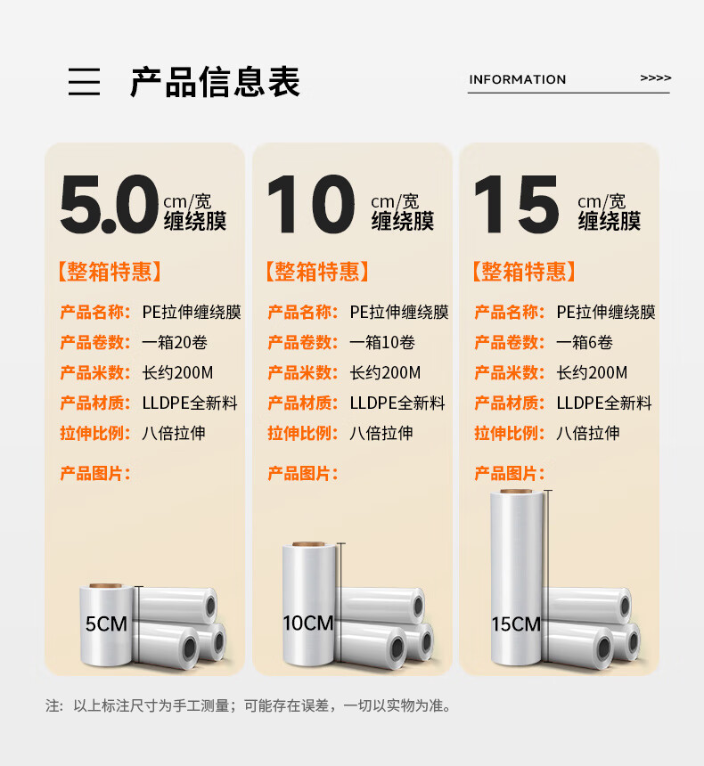 Tuxiang sealing film is 5cm wide, about 200M/20 rolls, small roll film, PE stretch film, industrial packaging, take-out leak-proof stretch film, grafting film, packaging box sealing, hand-used cling film
