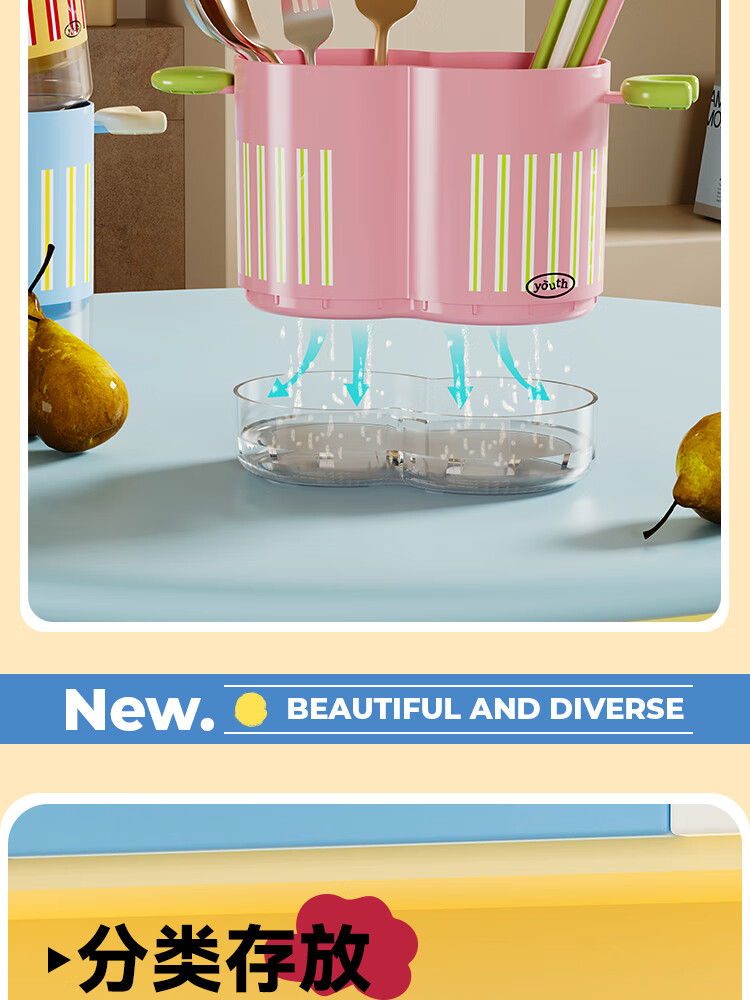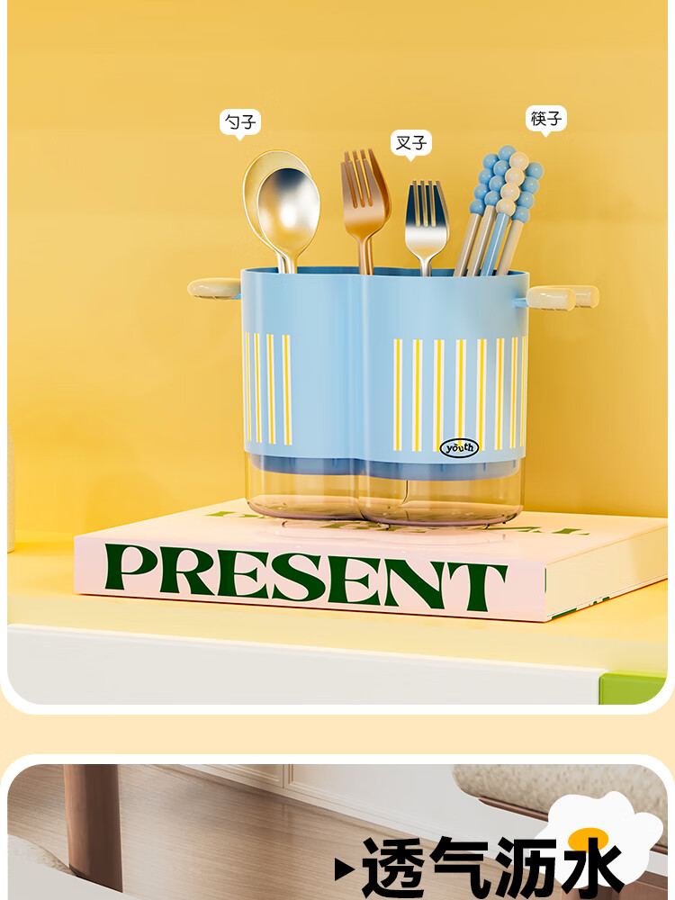 Added chopstick storage box high-end new kitchen countertop spoon tableware barrel drain rack chopstick cage basket bucket