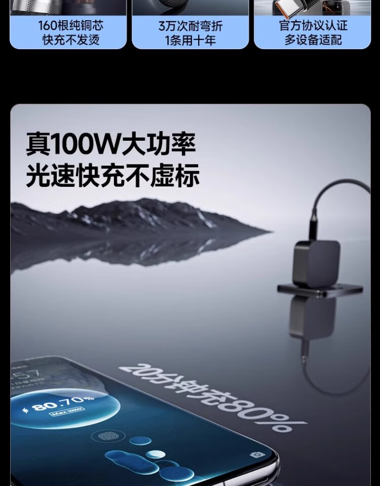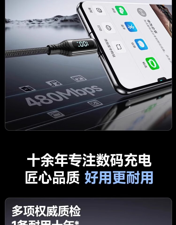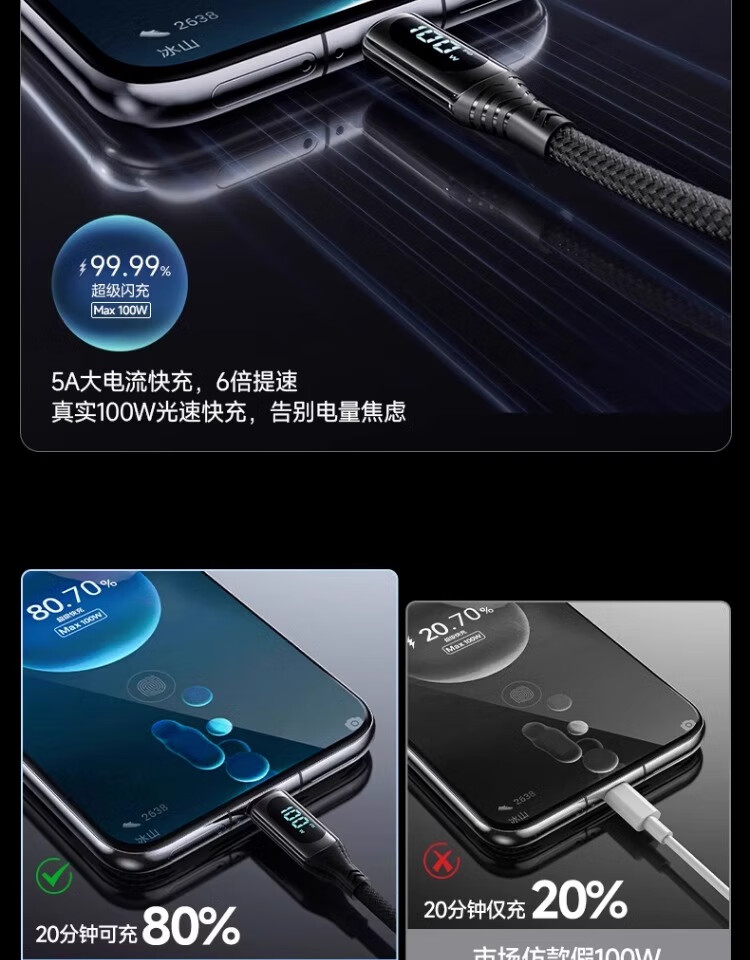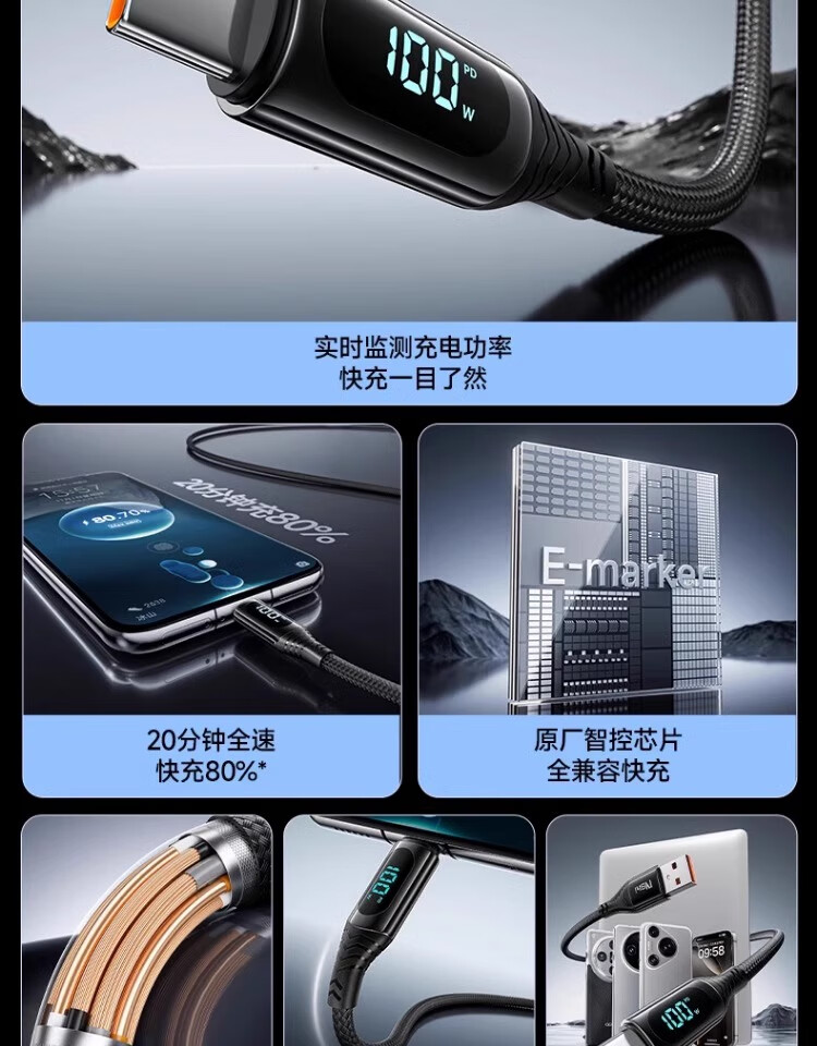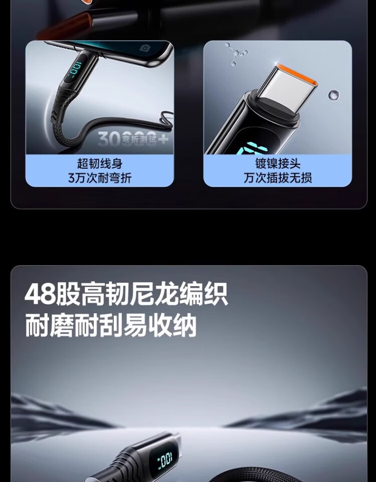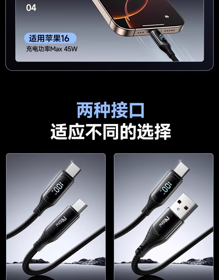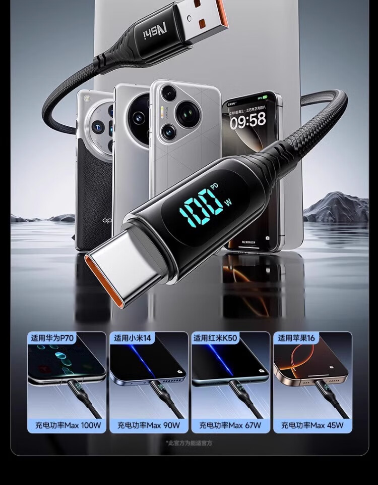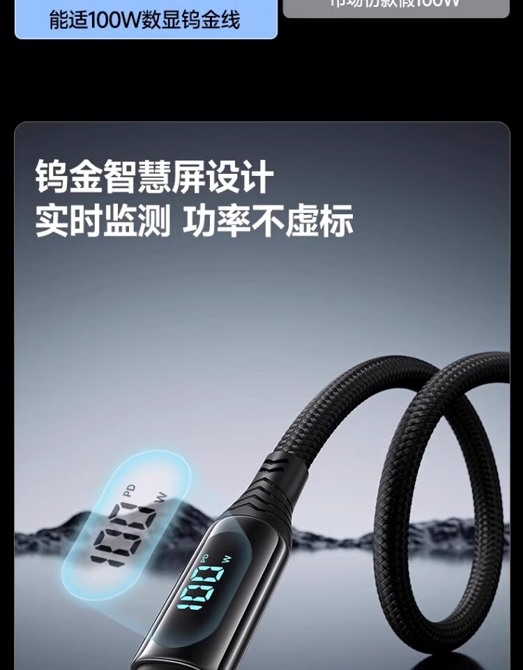 Suitable double-ended type-c data cable PD100W/80W fast charging cable tungsten digital display suitable for Apple 16/15/Huawei Xiaomi CtoC tablet car 2 meters