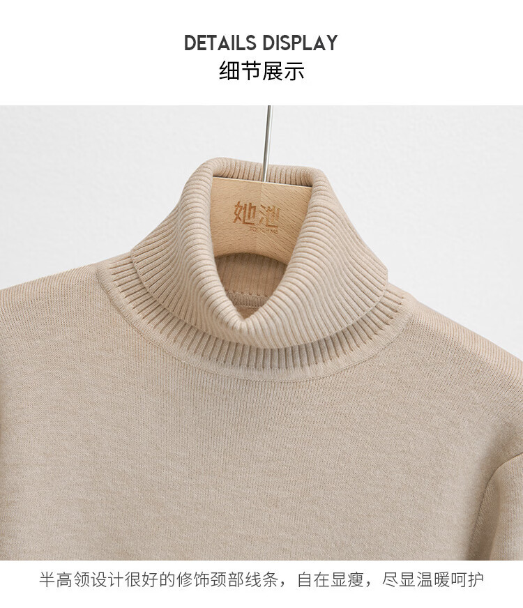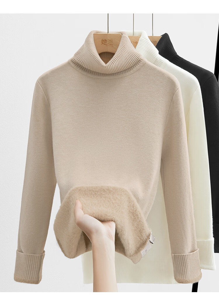 She pool turtleneck sweater 2025 winter new women's slim fit simple plus velvet inner pullover bottoming shirt