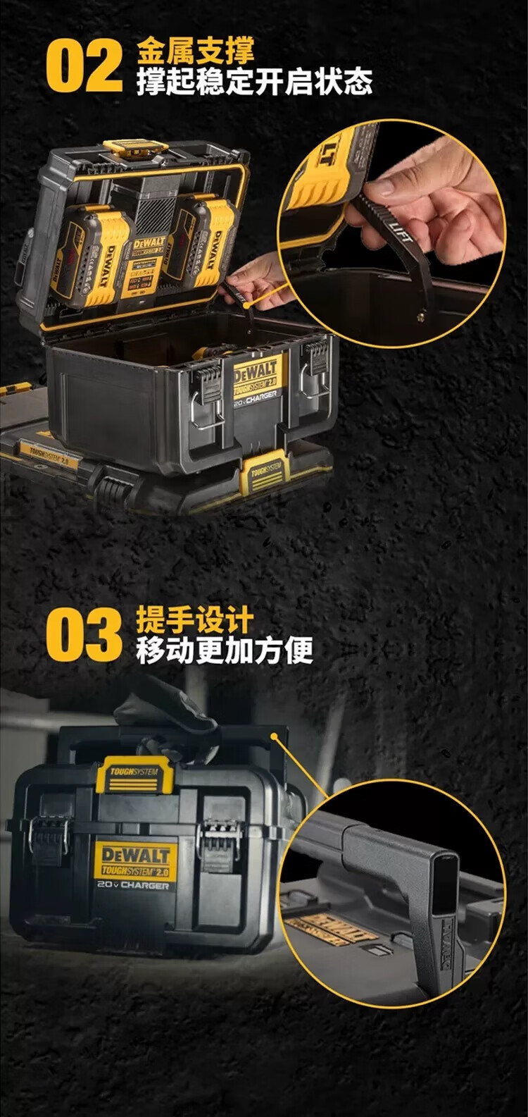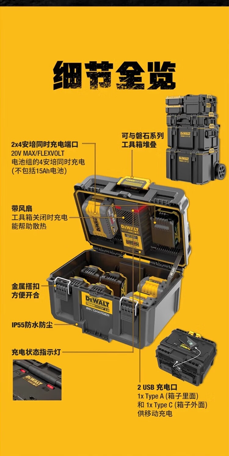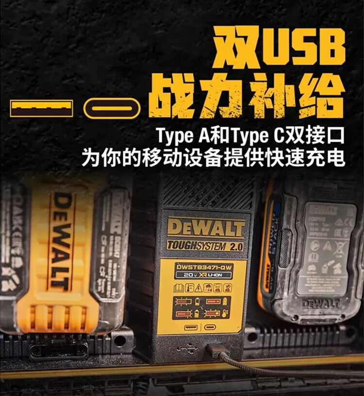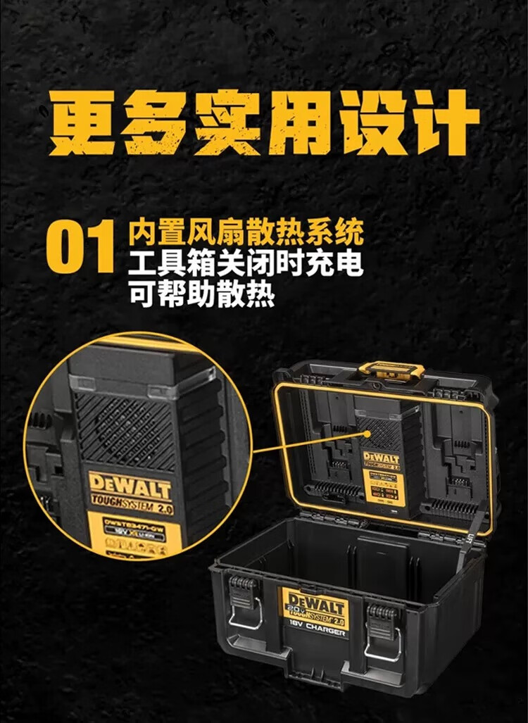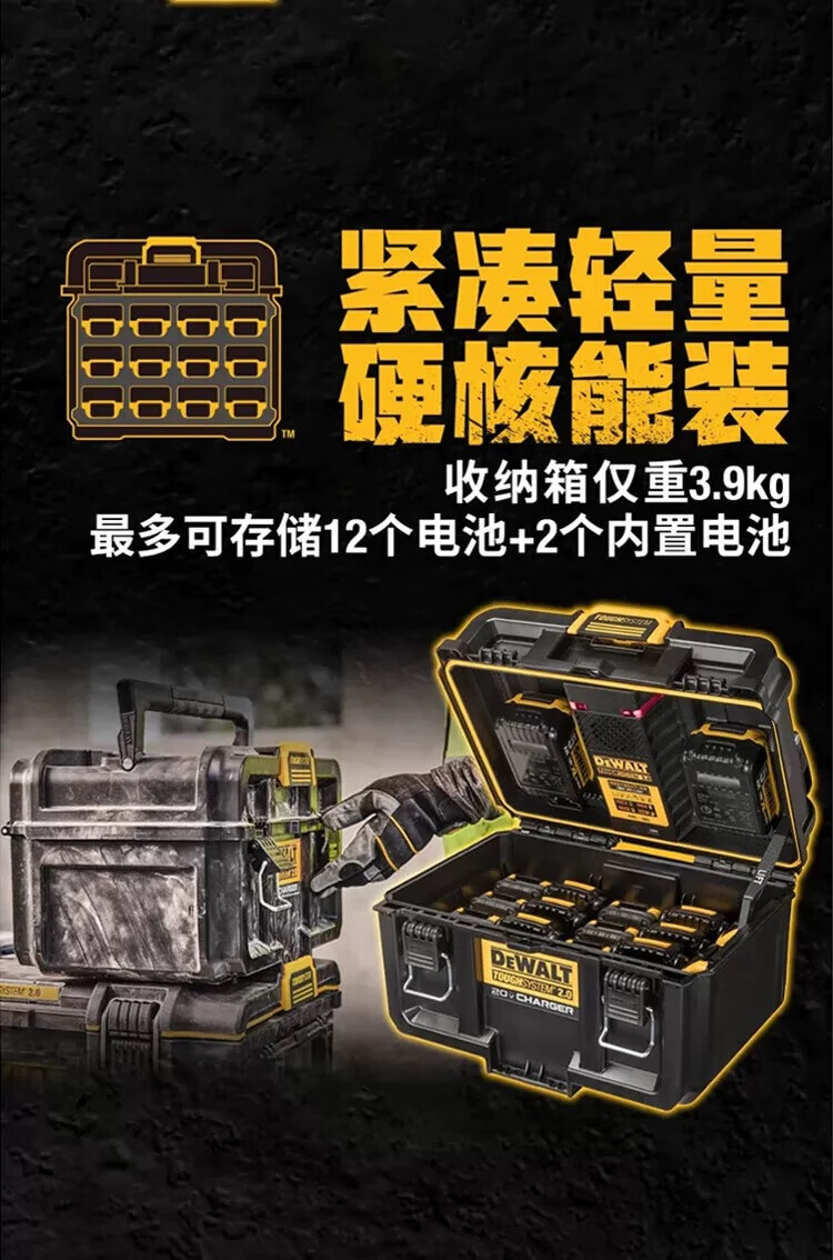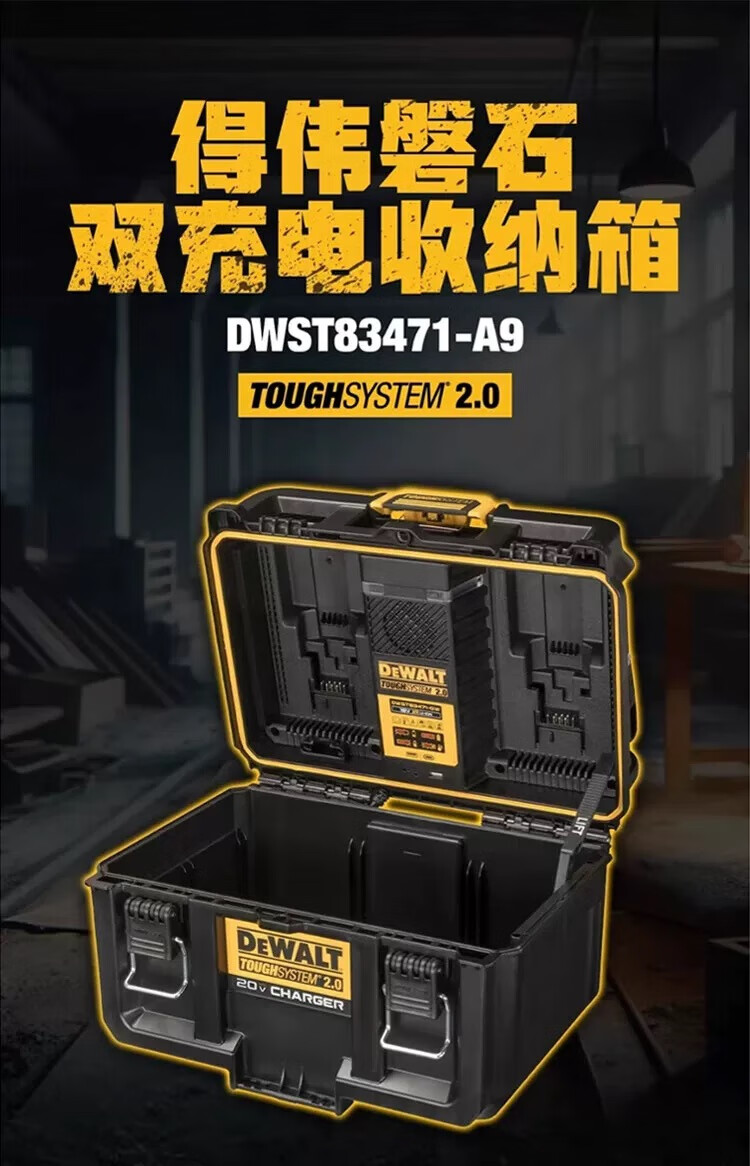 DEWALT Rock Series Dual Charging High Power Storage Box Stackable Toolbox DWST83471-A9