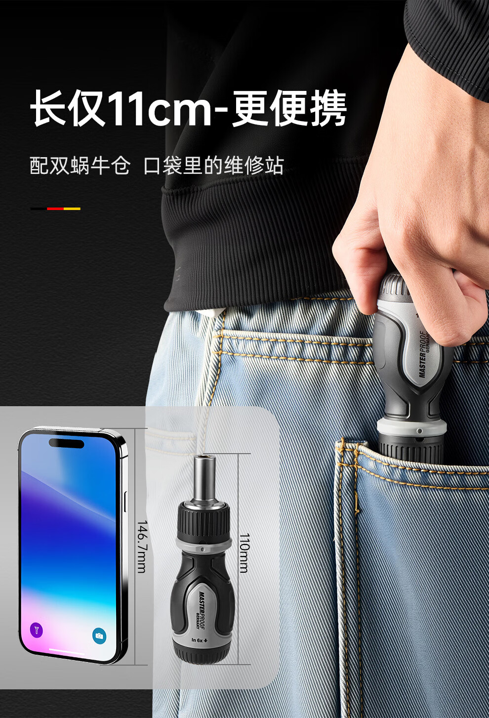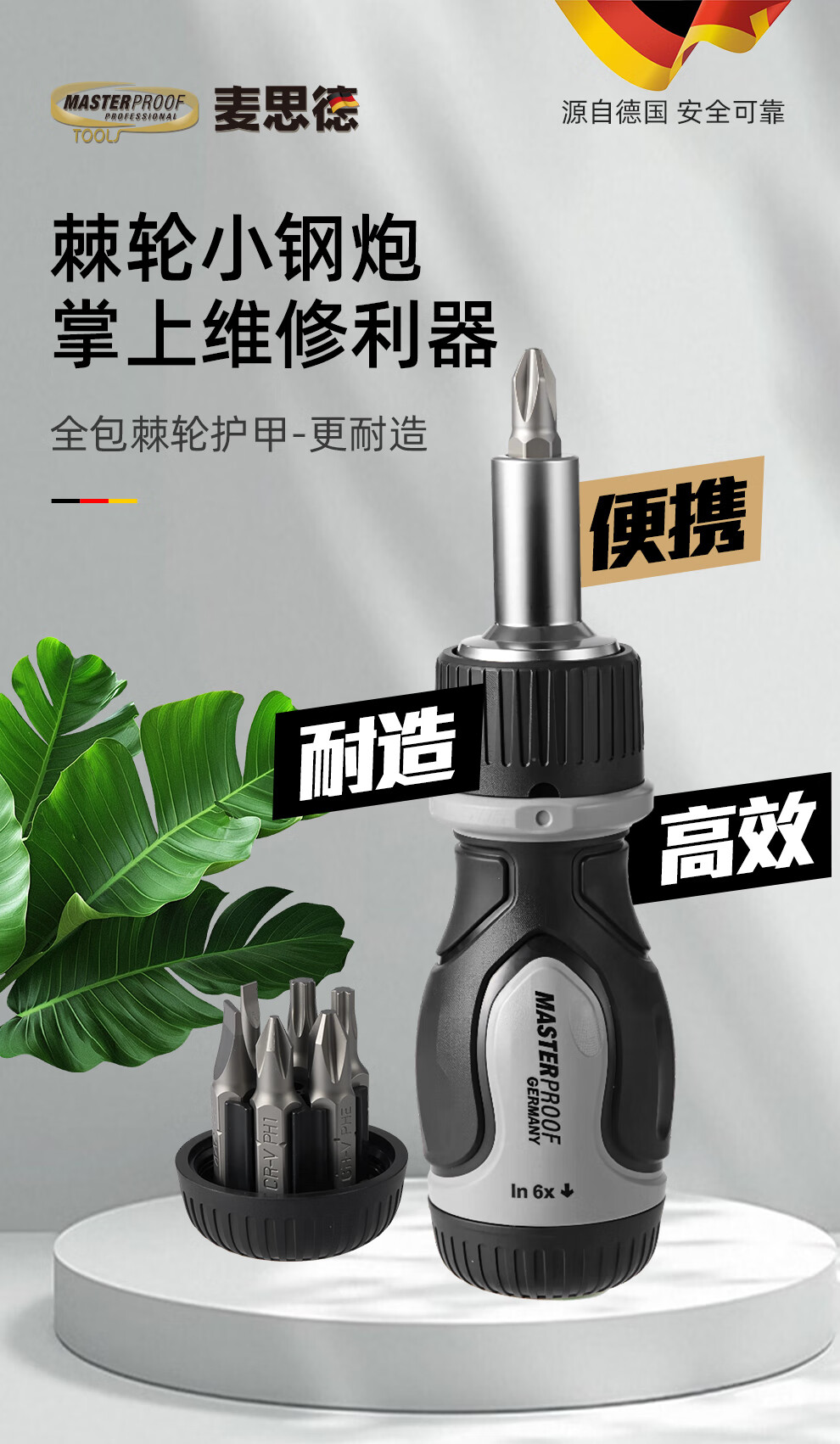 MASTERPROOF multifunctional ratchet screwdriver set, small portable handle, cross-shaped plum blossom hexagonal bit set