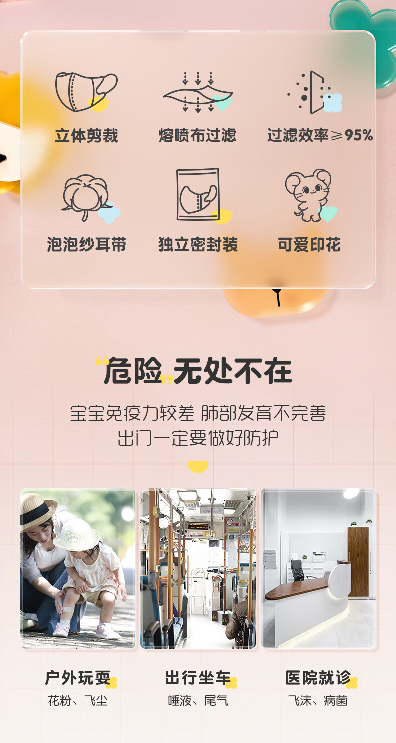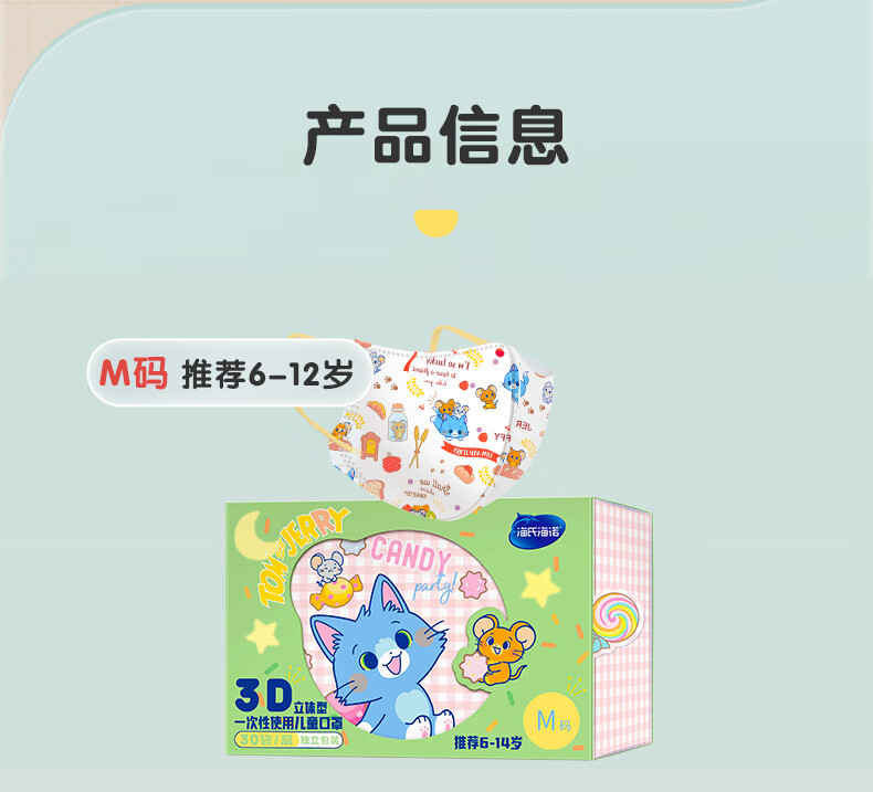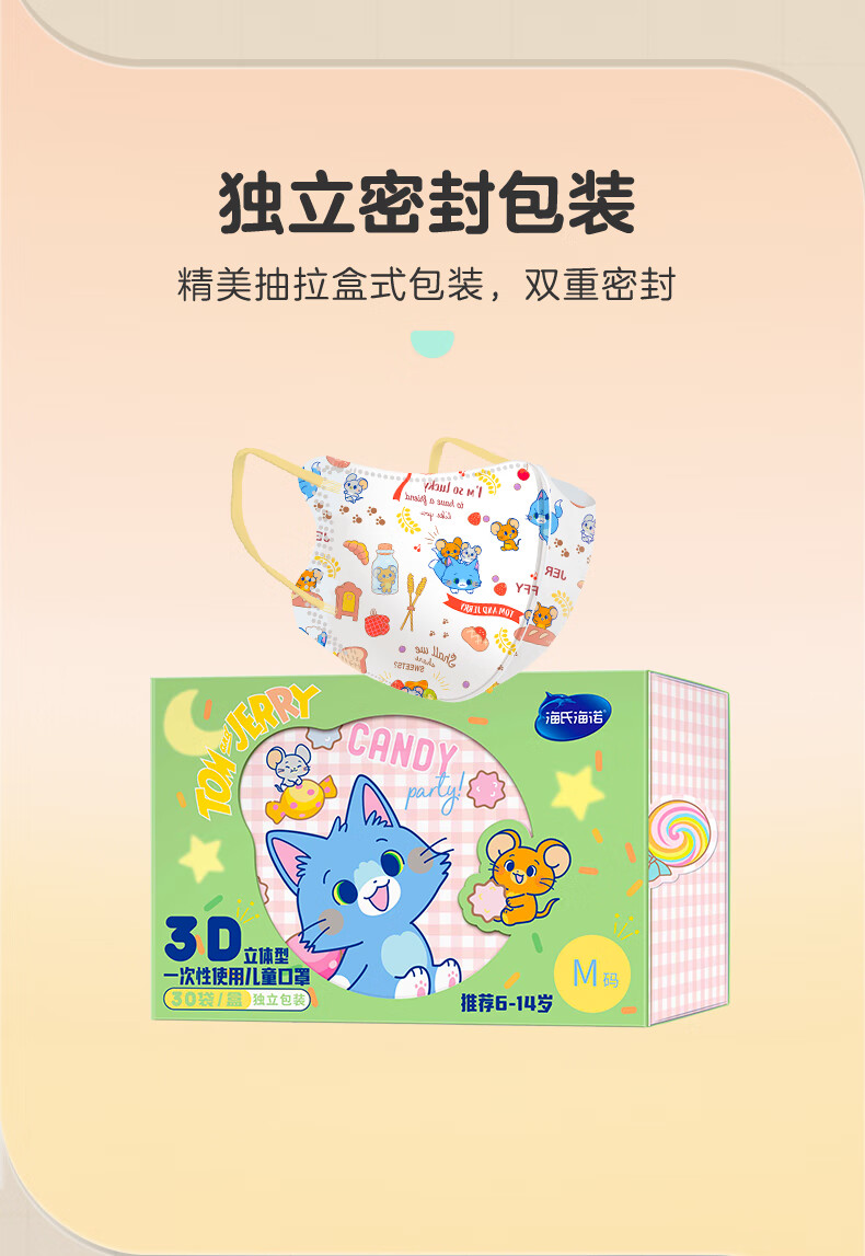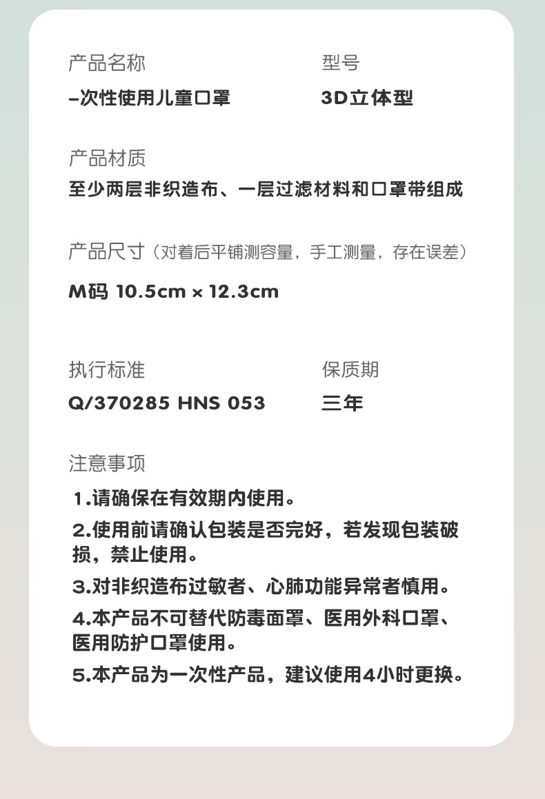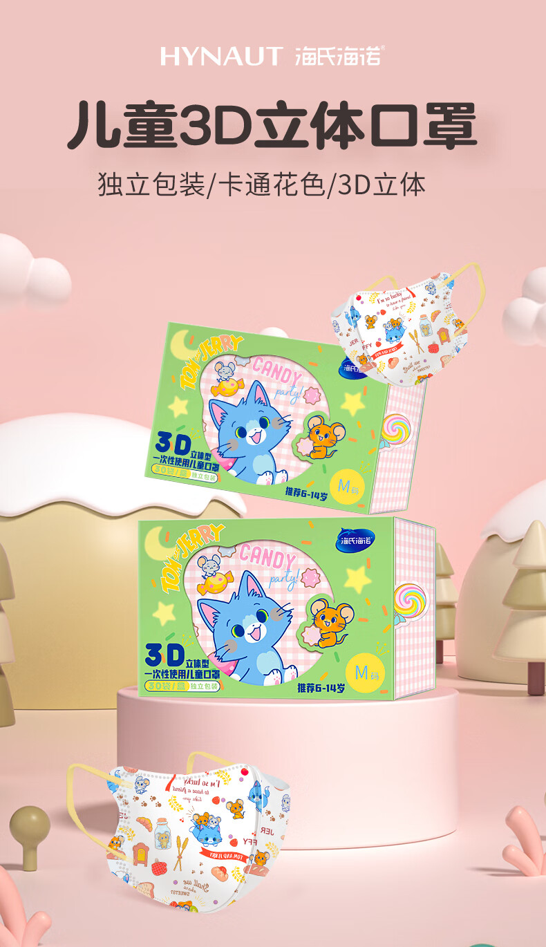 Haishi Hainuo 3D three-dimensional disposable children's mask 6-12 years old, individually packaged, one bag, dust-proof, cold-proof and warm in winter