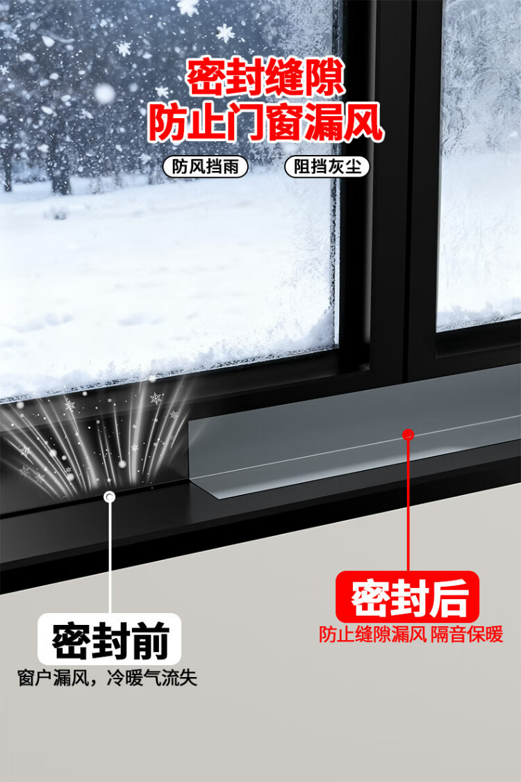 Mileqi windproof tape for door and window gaps without leaving any glue to seal the window artifact. Winter seal strip to prevent wind leakage and warm film. Seamless waterproof and cold-proof film. 50mm wide * 50 meters long. Silver 1 roll.