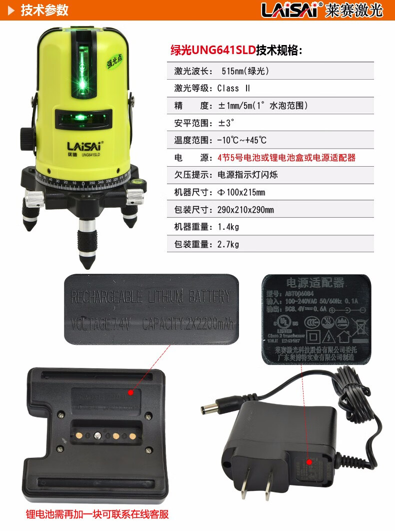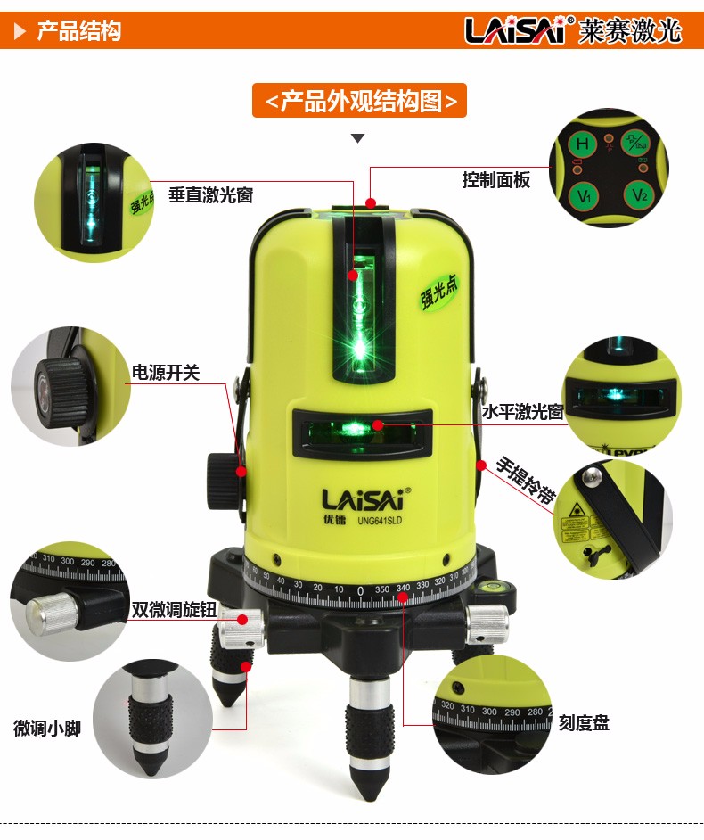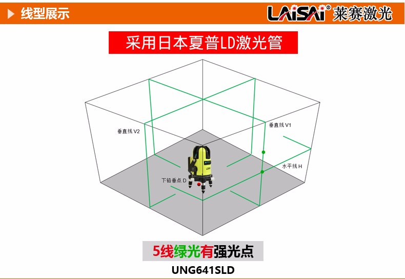 莱赛激光莱赛蓝绿光激光水平仪5线高精度UNG641SLD强光室外标线仪莱赛水平 5线绿光UNG641SLD带点+1.6米脚架