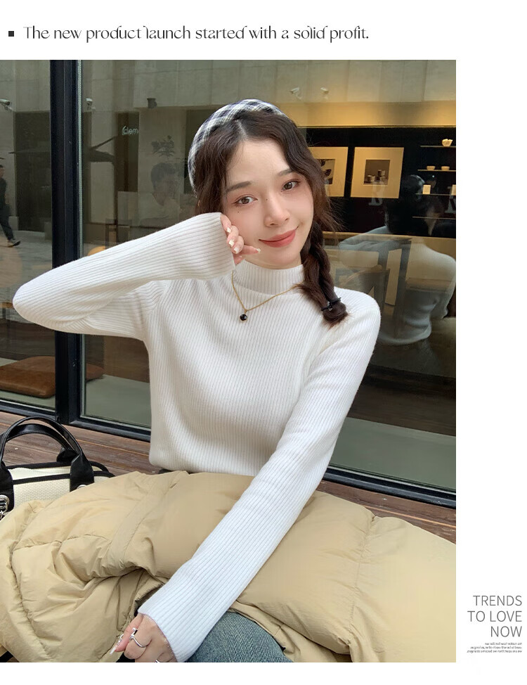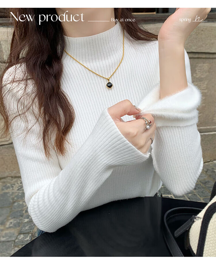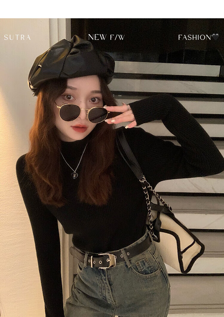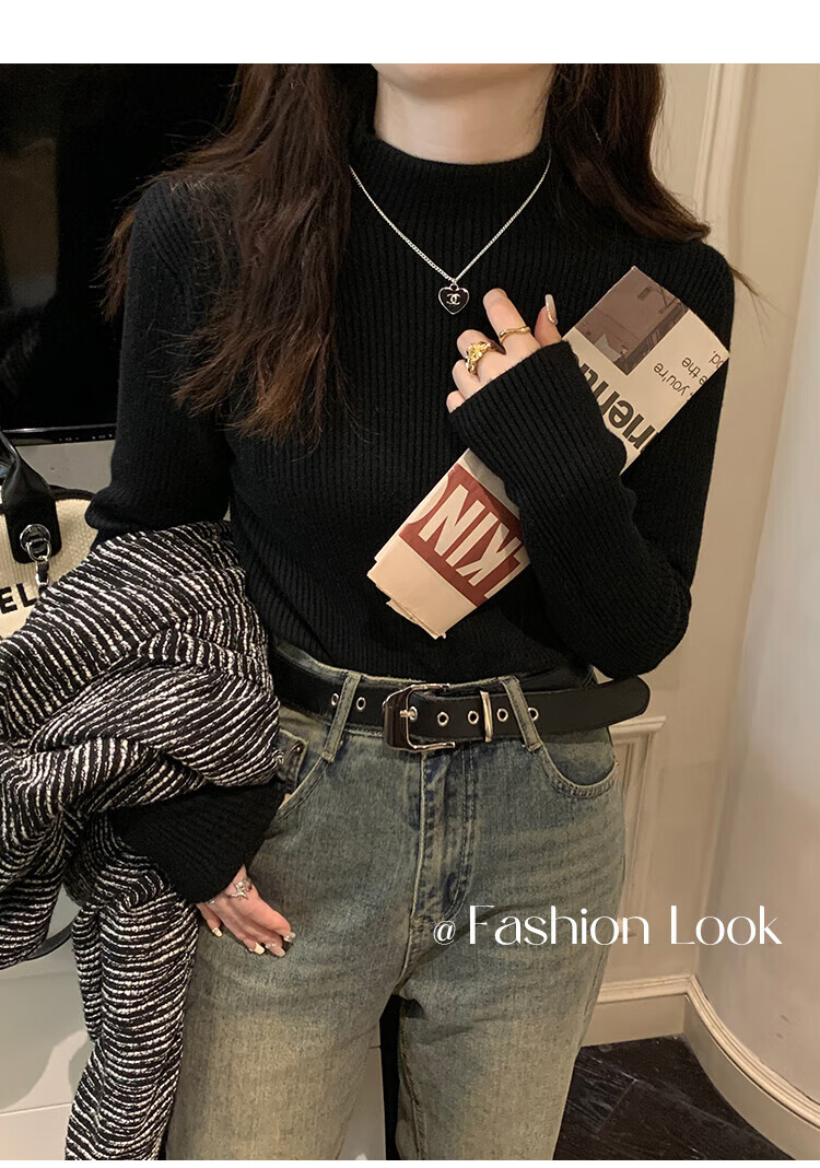 Catman black half-turtleneck sweater for women in autumn and winter plus velvet and thickened one-piece velvet inner layering shirt mid-collar warm top