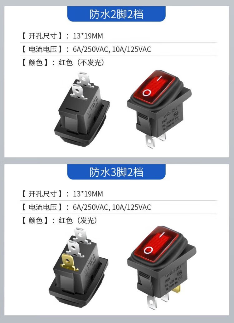 Huijun KCD1 small boat-shaped switch water dispenser electronic scale boat-shaped rocker power switch with light, two feet and two gears, no light, black