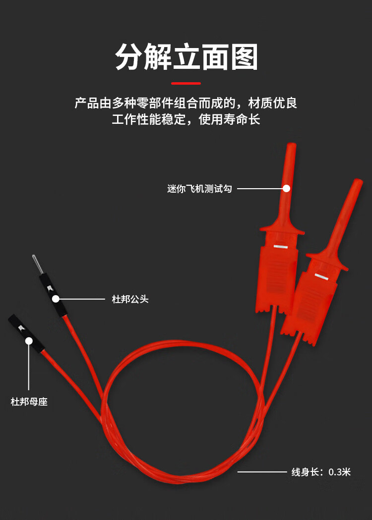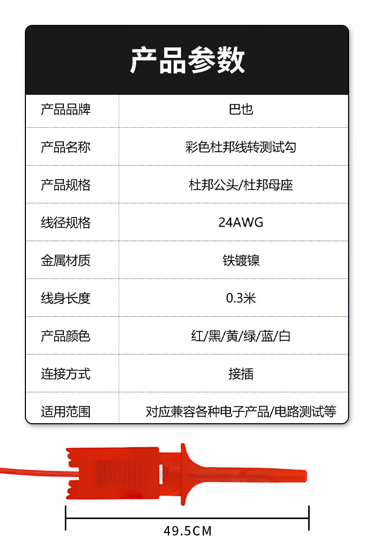 Baye color Dupont wire-to-test hook hook test clip connection wire hook 0.3 meters 6 male heads BY-BG003MX