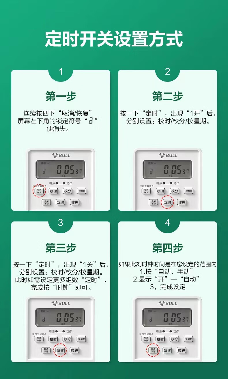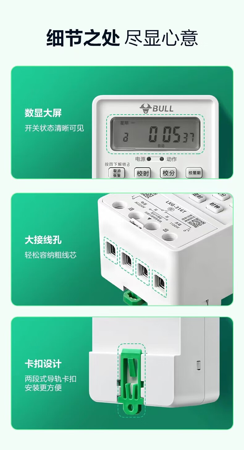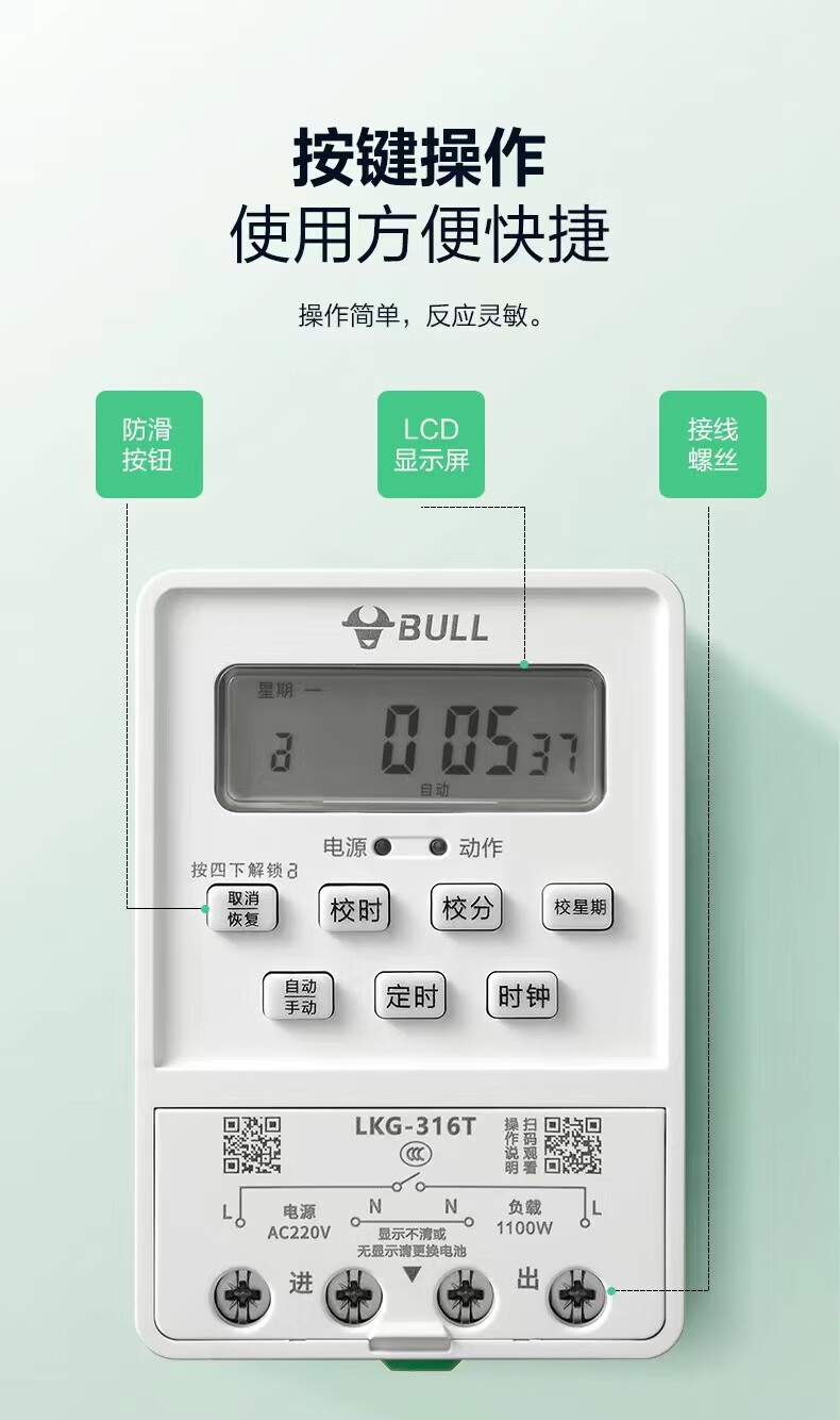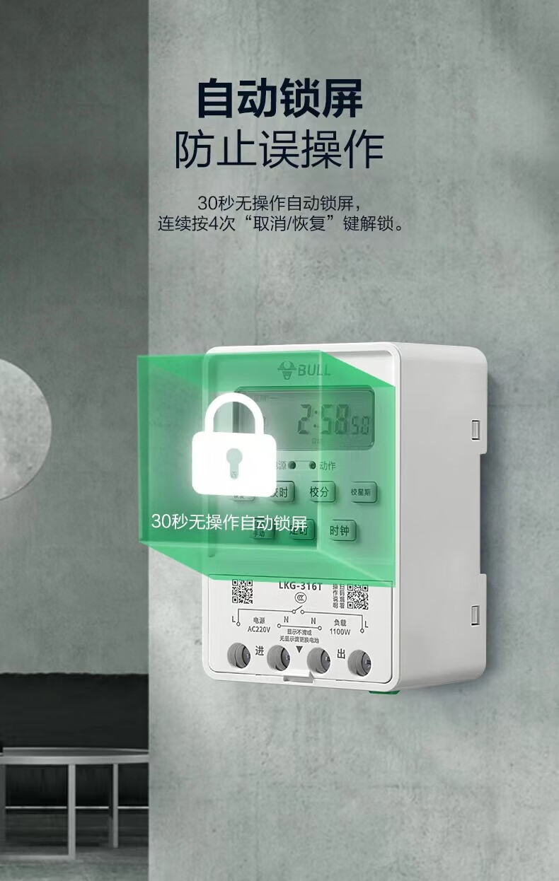 BULL time control switch 220v timer power supply microcomputer delay switch 16 sets of time switch cycle control power outage memory LKG-316T