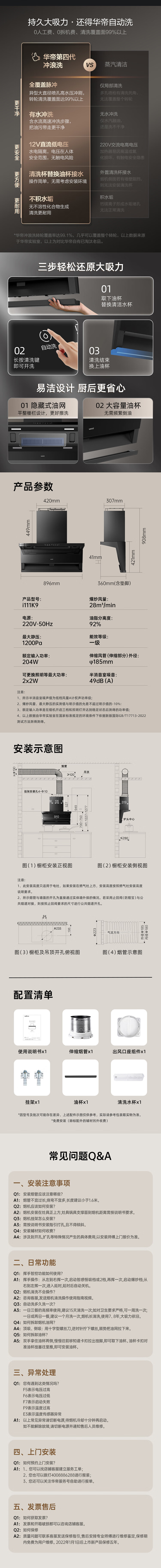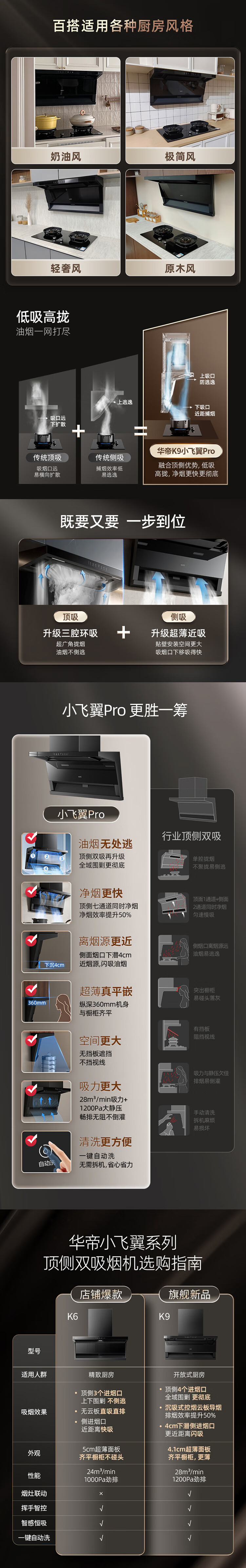 Vantage Xiaofeiyi Pro K9 variable frequency 28 air volume large suction self-cleaning recommended 308 stove household detachable range hood side suction top side double suction 7-shaped