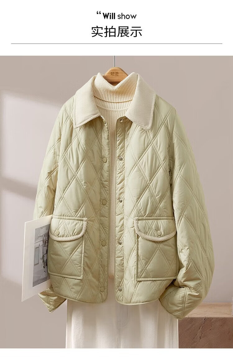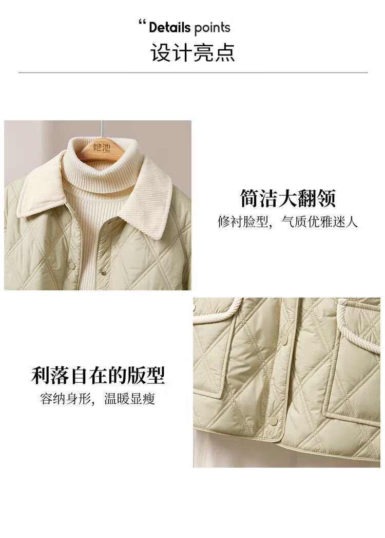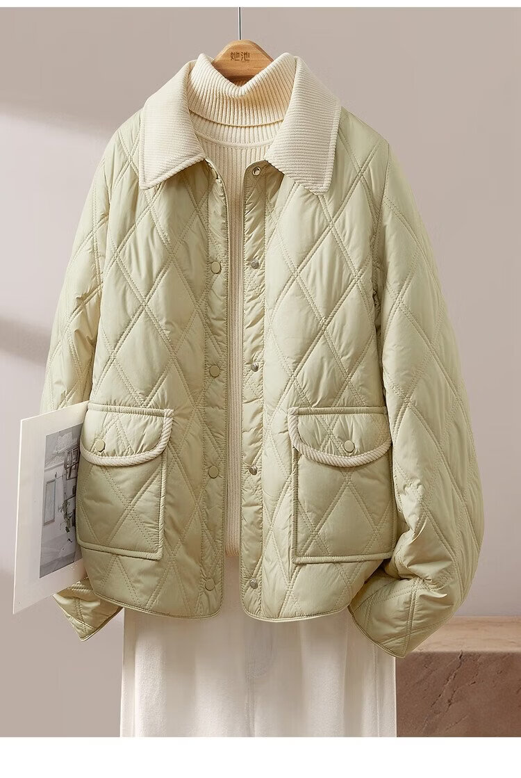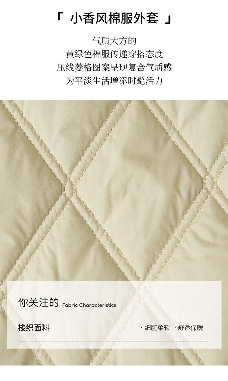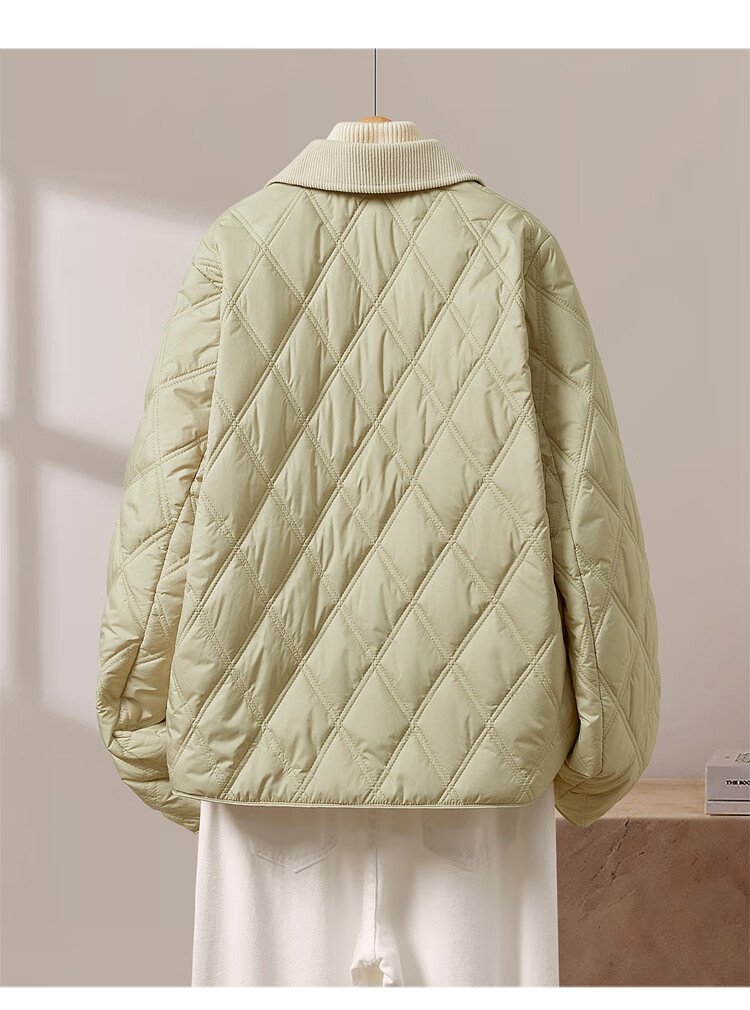 She pool diamond plaid embossed warm cotton coat women's 2025 autumn new lapel single-breasted cotton coat