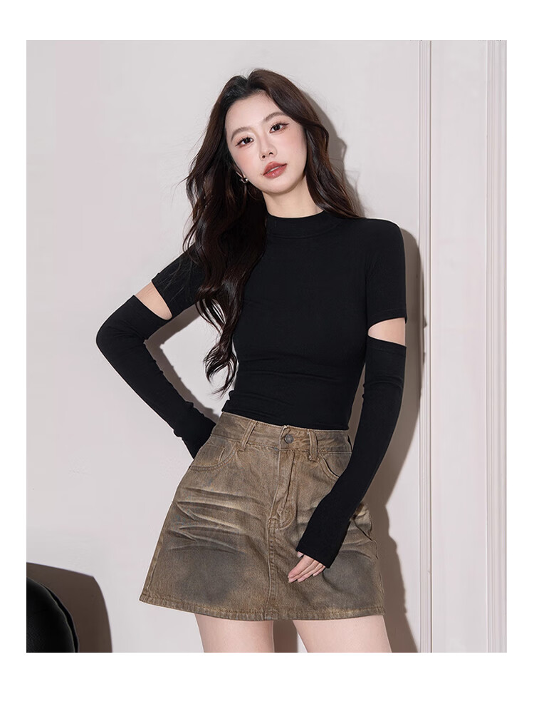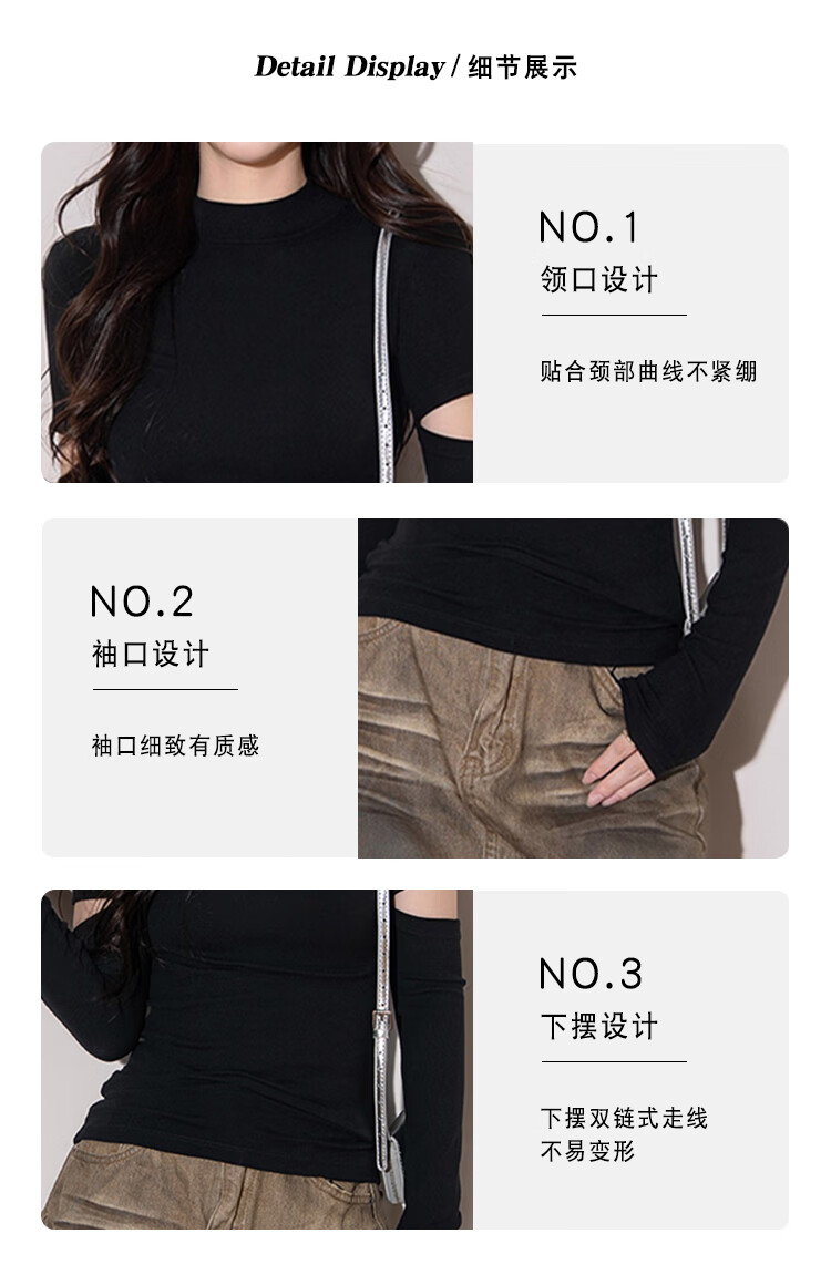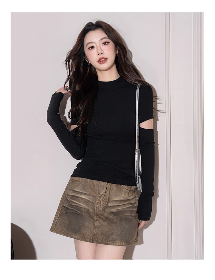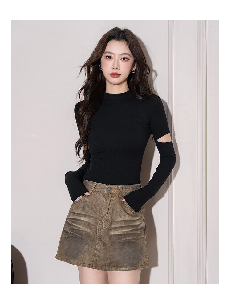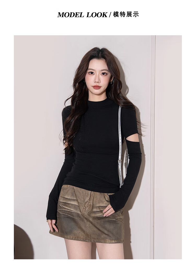 NOME half turtleneck long-sleeved bottoming shirt for women autumn knitted inner design hollow slim top black M