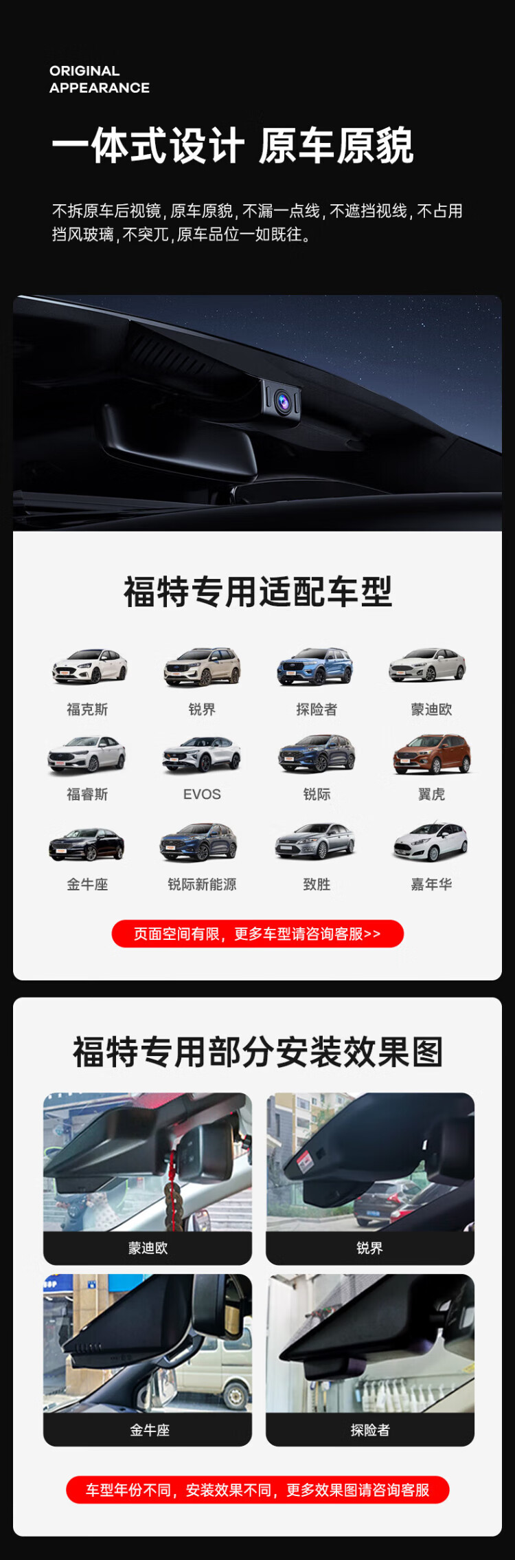 Hikvision Ford Mondeo Edge Escape Taurus Edge Focus Leader Explorer Special Driving Recorder 4K