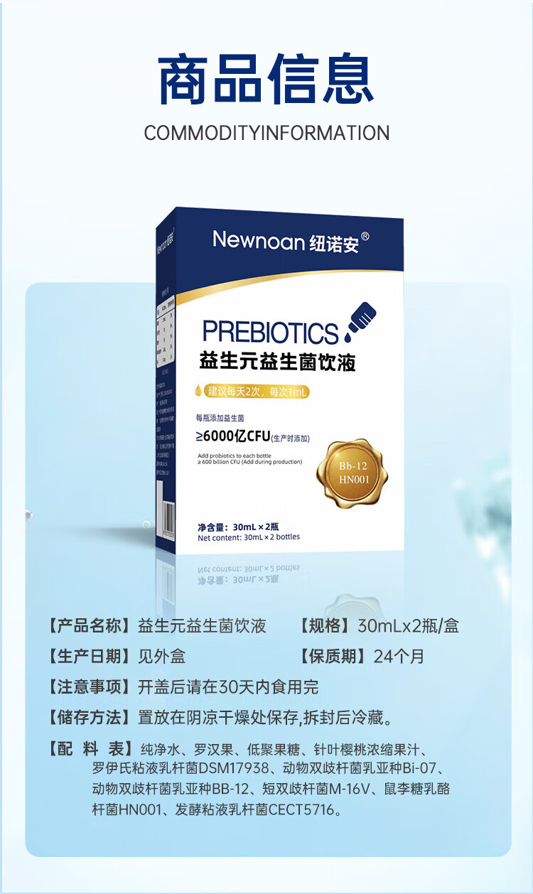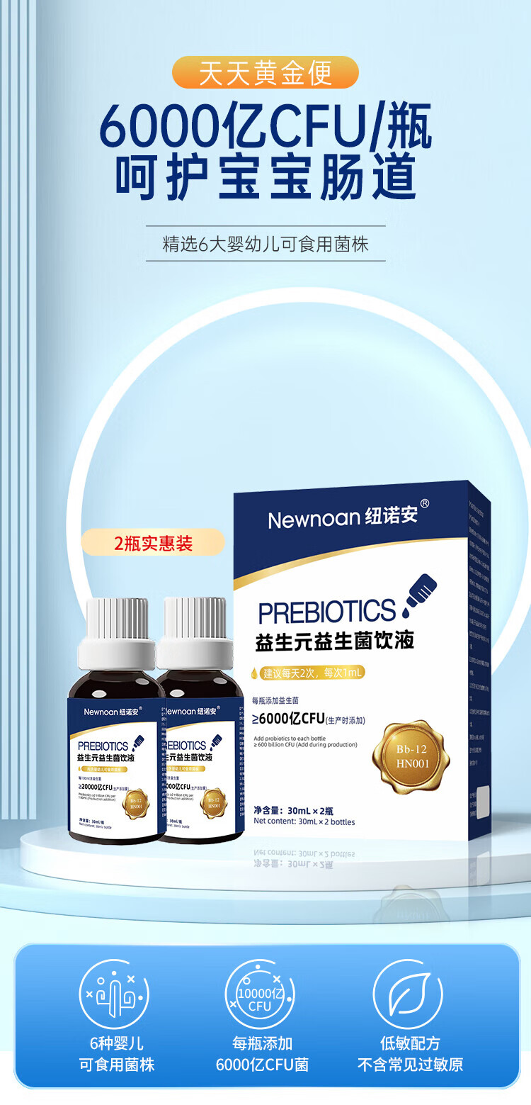 Nunoan probiotic drops children's baby gastrointestinal probiotics six-combination edible strains for infants and young children 30mLx2 bottles