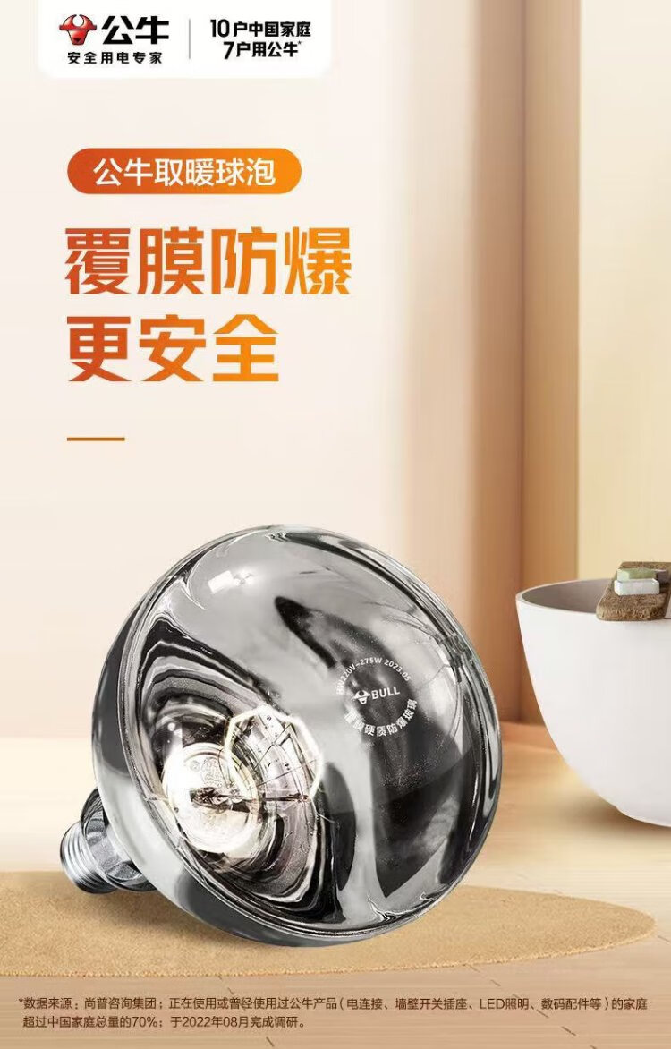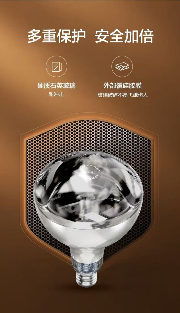 Bull (BULL) Yuba heating bubble E27 screw replacement lamp heater HW220-275-AD 275W high power heating H165 (mm)