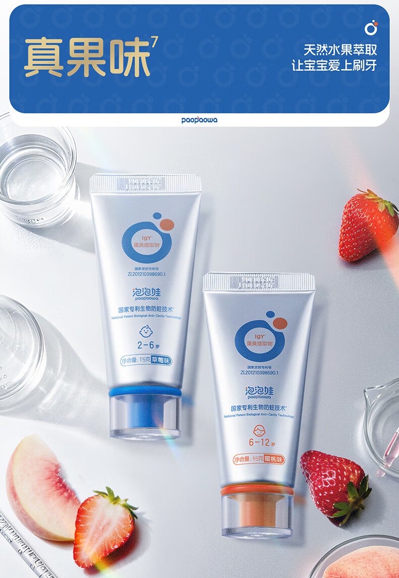 Bubblewa children's toothpaste 6-12 years old, fluoride-free, fluoride-free, biological anti-cavity, long-lasting anti-cavity toothpaste, solid tooth peach flavor 15g