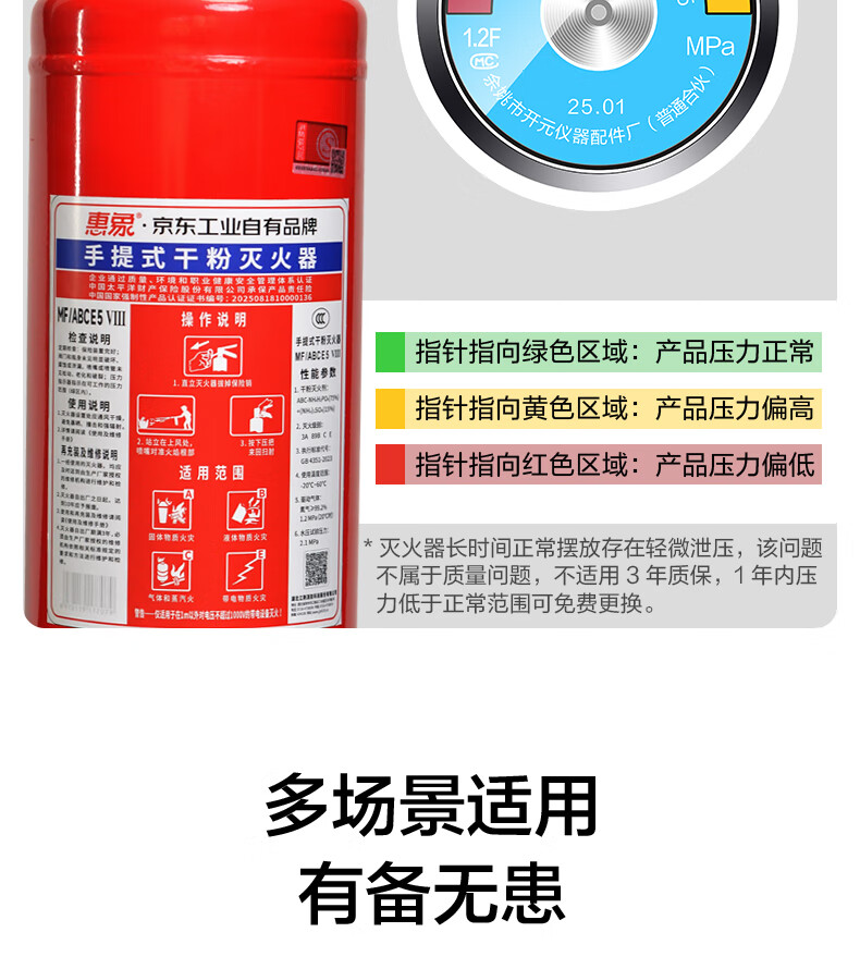 Huixiang 5kg portable dry powder fire extinguisher 25 years new national standard fire certification household commercial vehicle Jingdong Industrial own brand MF/ABCE5 VIII