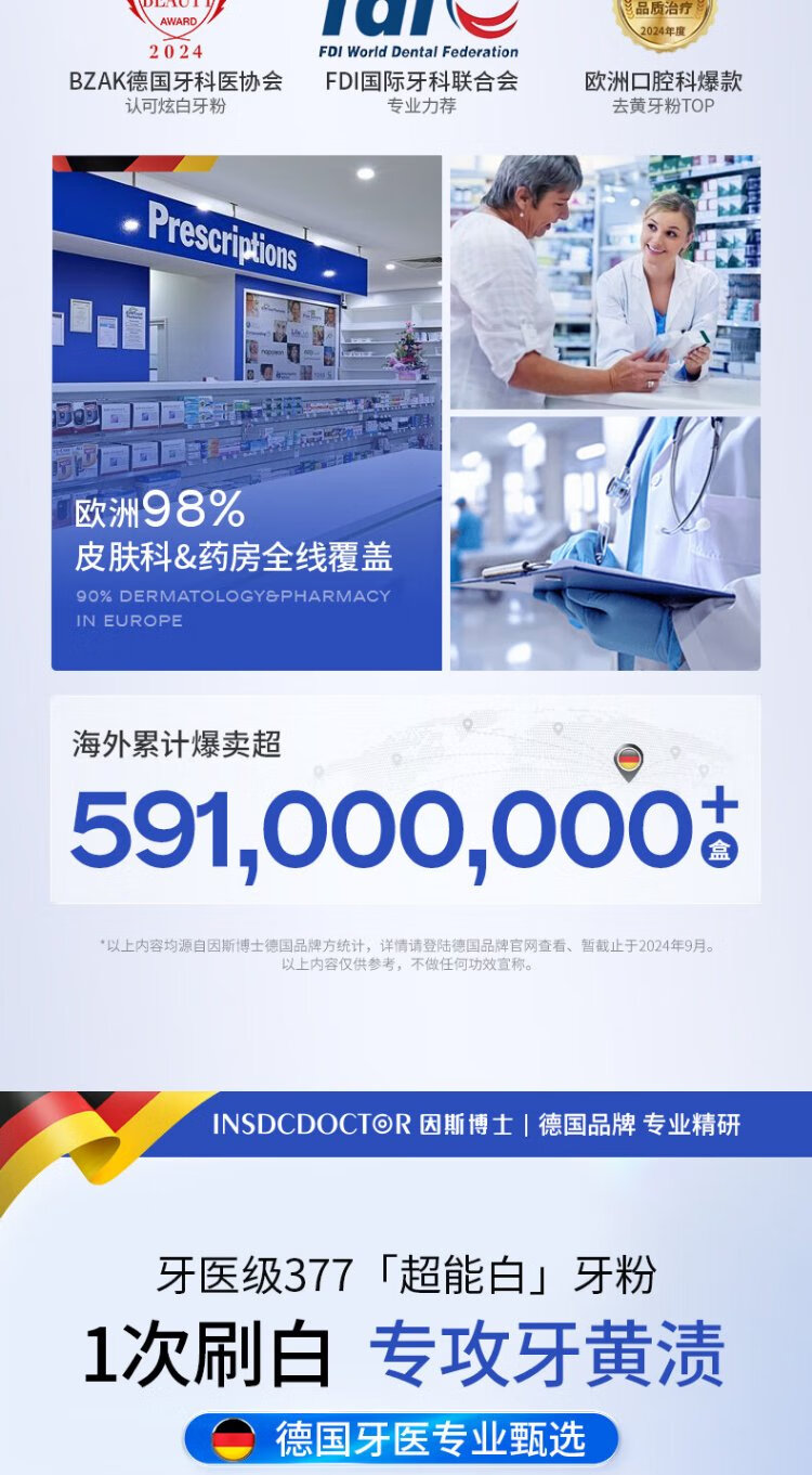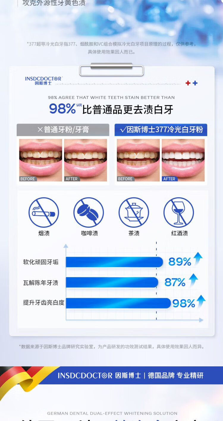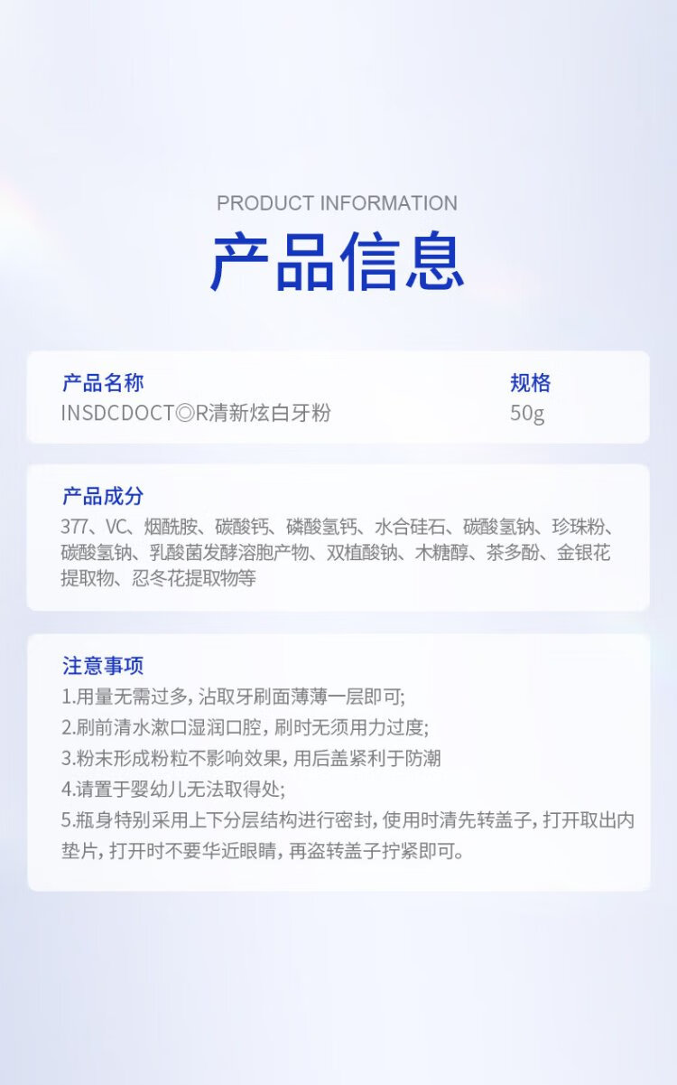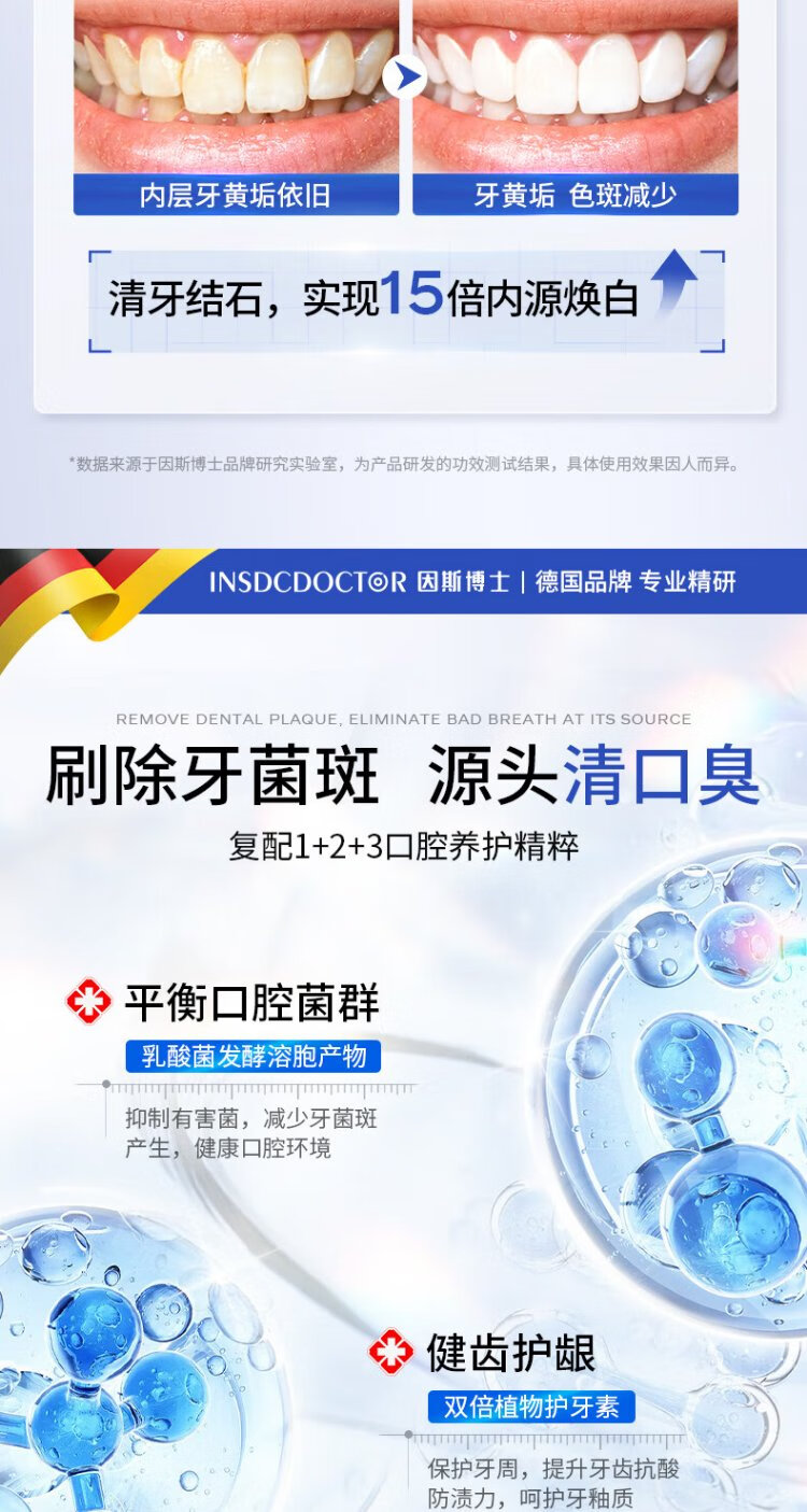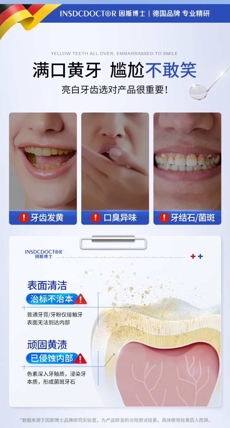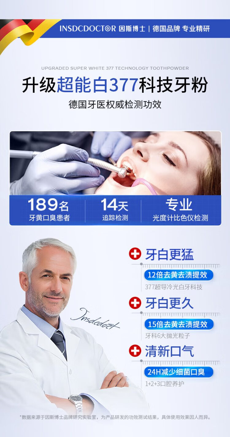 INSDCDOCTOR tooth powder removes bad breath, removes yellow, removes tooth stains, removes tobacco stains, tartar, bad breath, cleans teeth, cleans teeth, whitens teeth, and brushes teeth 50g