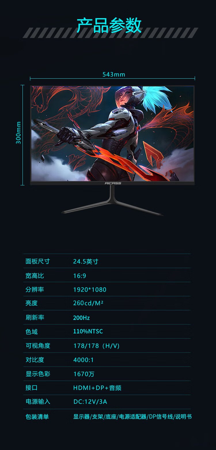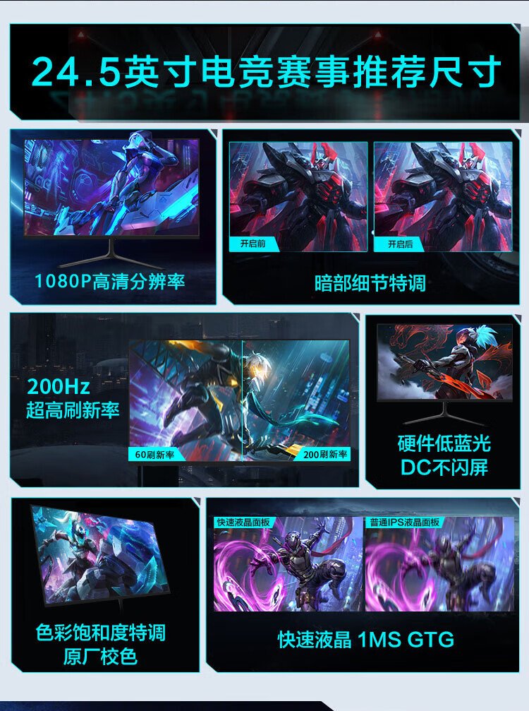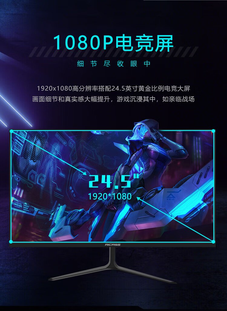 80% new RICRSS 24.5-inch e-sports gaming monitor 200Hz 1ms FreeSync compatible 110% NTSC high-definition office desktop LCD computer screen