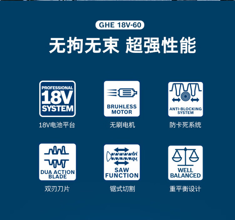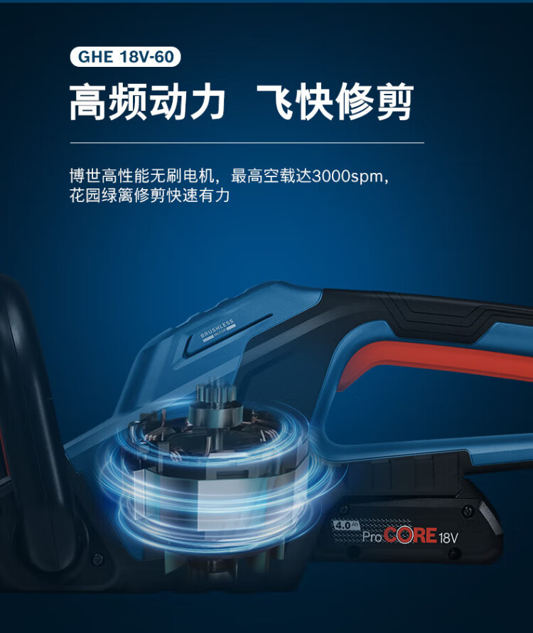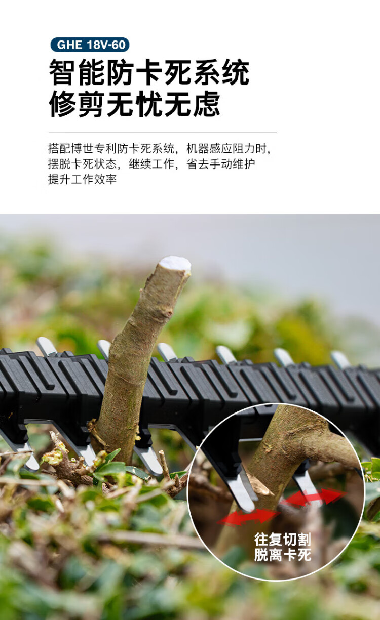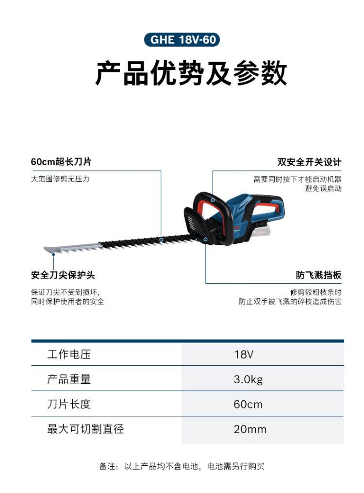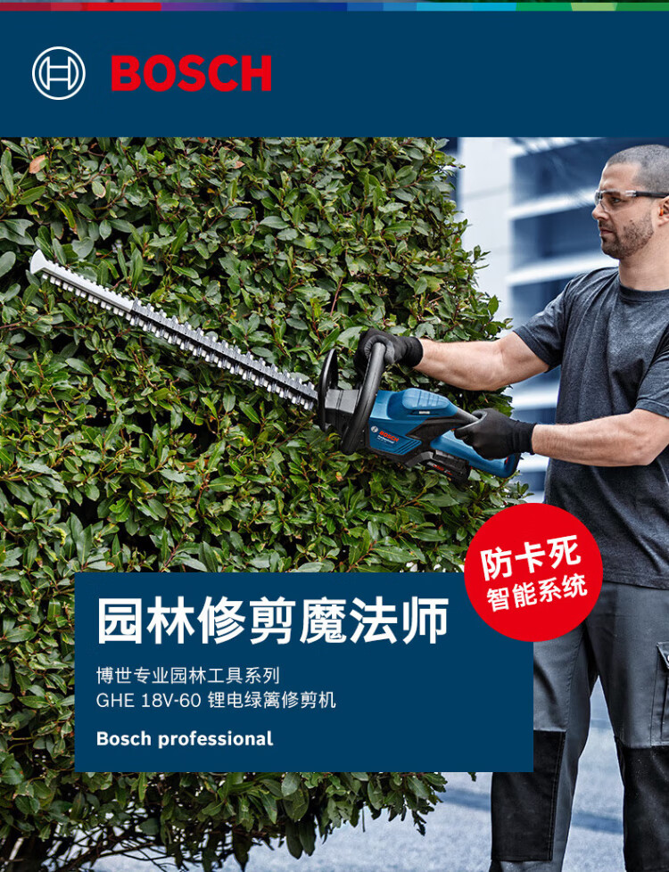 Bosch (BOSCH) garden electric hedge trimmer 18V brushless lithium battery accidental touch protection GHE18V-60 blade 60cm bare metal