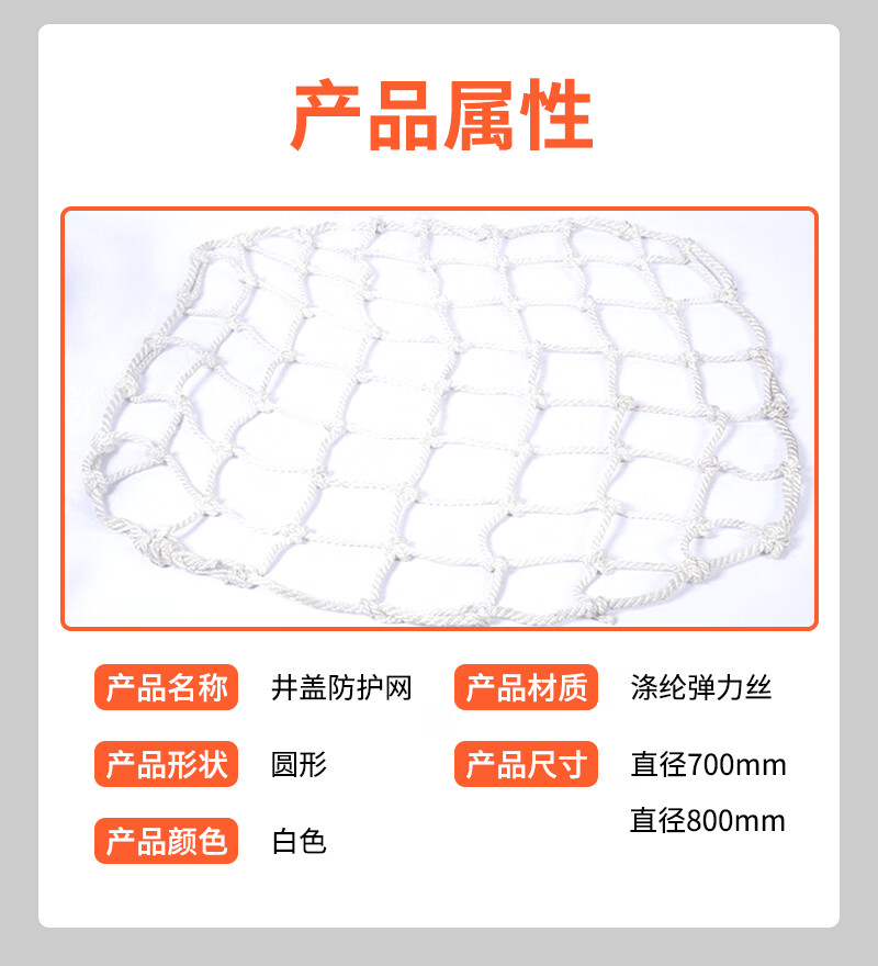 Jiuqiangu manhole cover anti-fall net, sewer manhole cover protection net, municipal circular rainwater well safety net, manhole inspection well sewage outlet safety anti-fall net, diameter 700MM, with 6 hooks