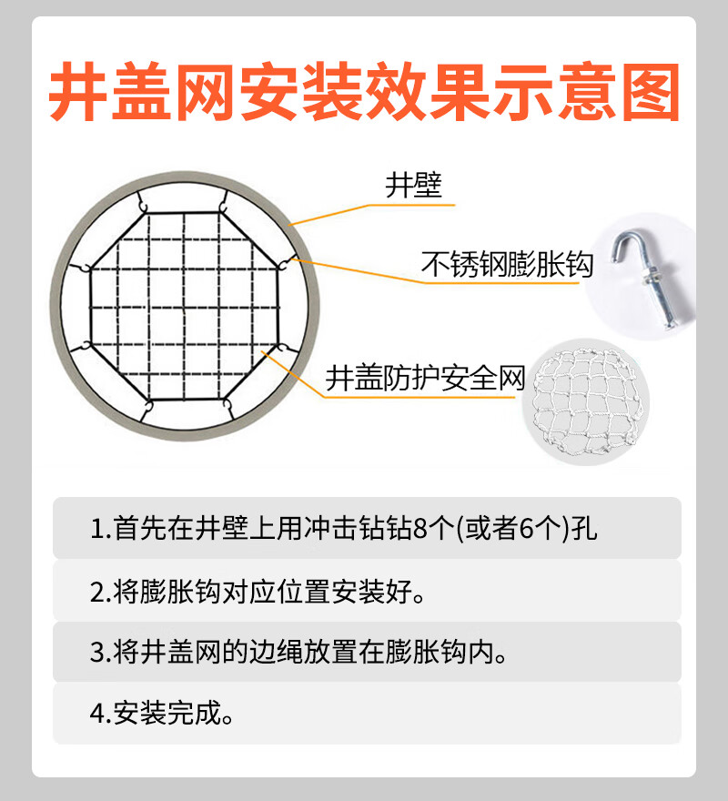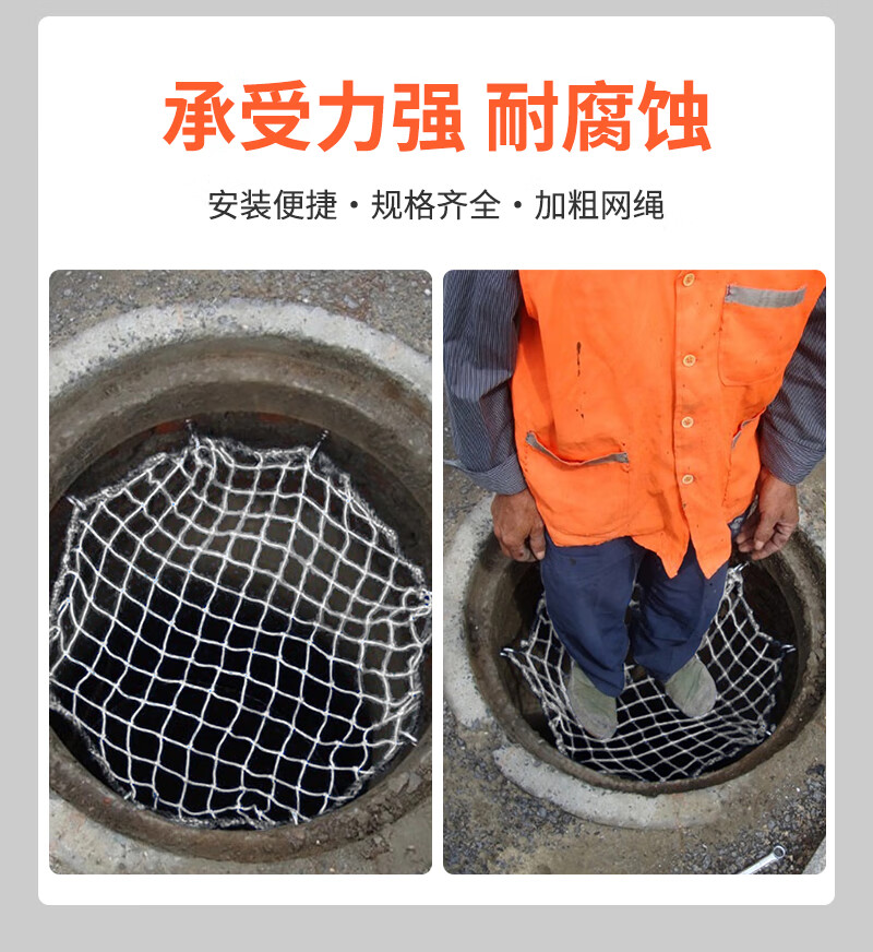 Jiuqiangu manhole cover anti-fall net, sewer manhole cover protection net, municipal circular rainwater well safety net, manhole inspection well sewage outlet safety anti-fall net, diameter 800MM, with 6 hooks