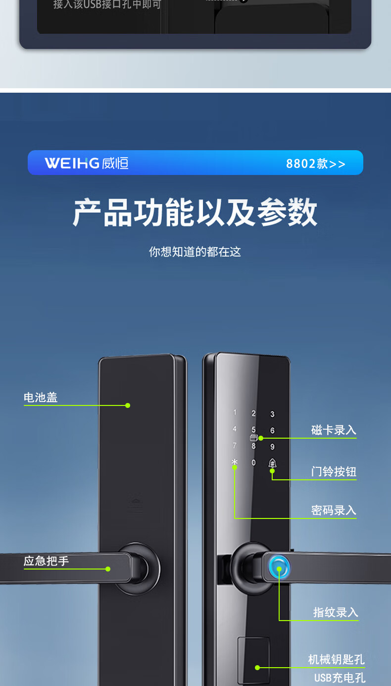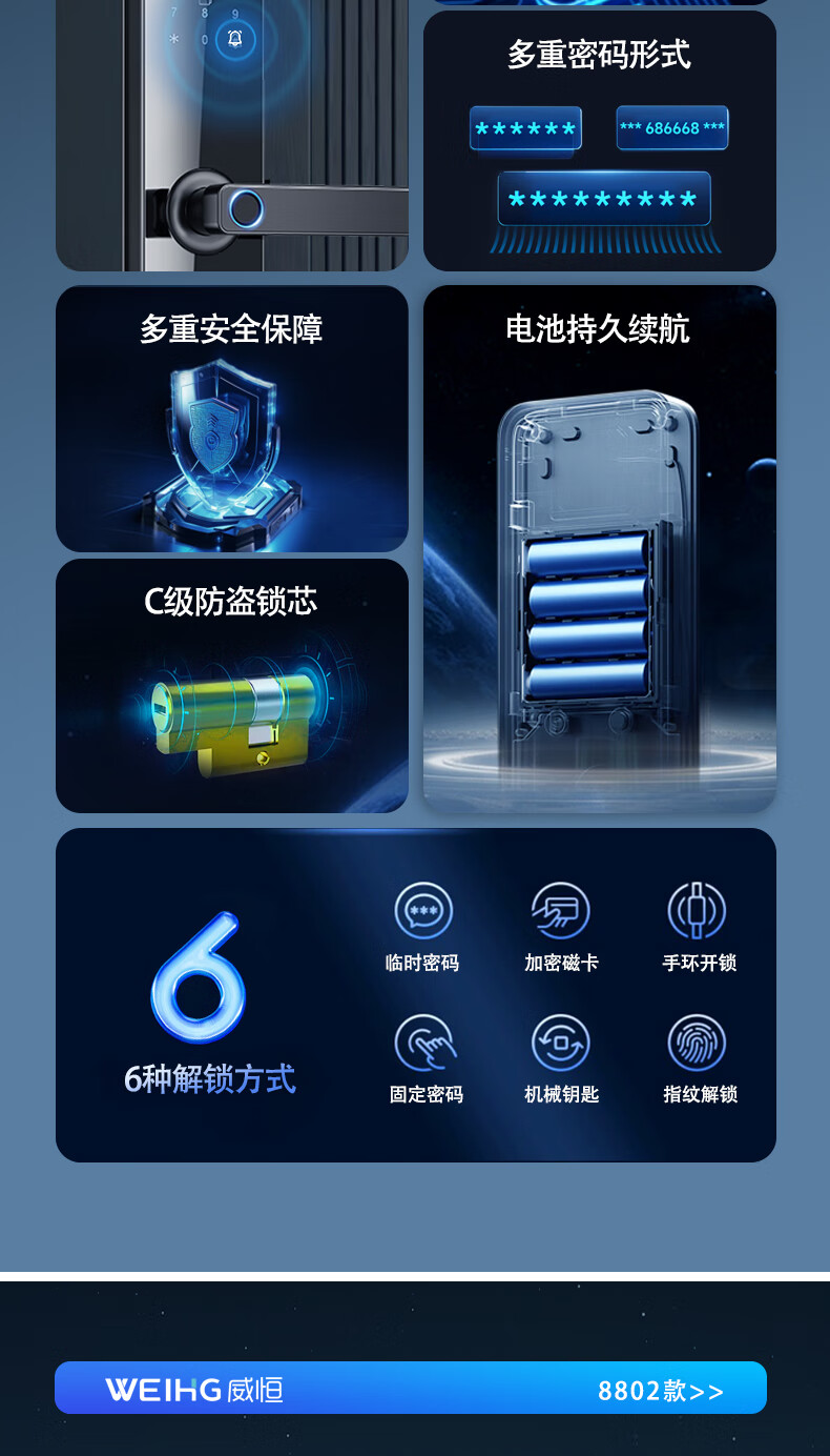 Weiheng fingerprint lock password lock smart door lock electronic lock anti-theft door c-level lock core smart door anti-theft small black box