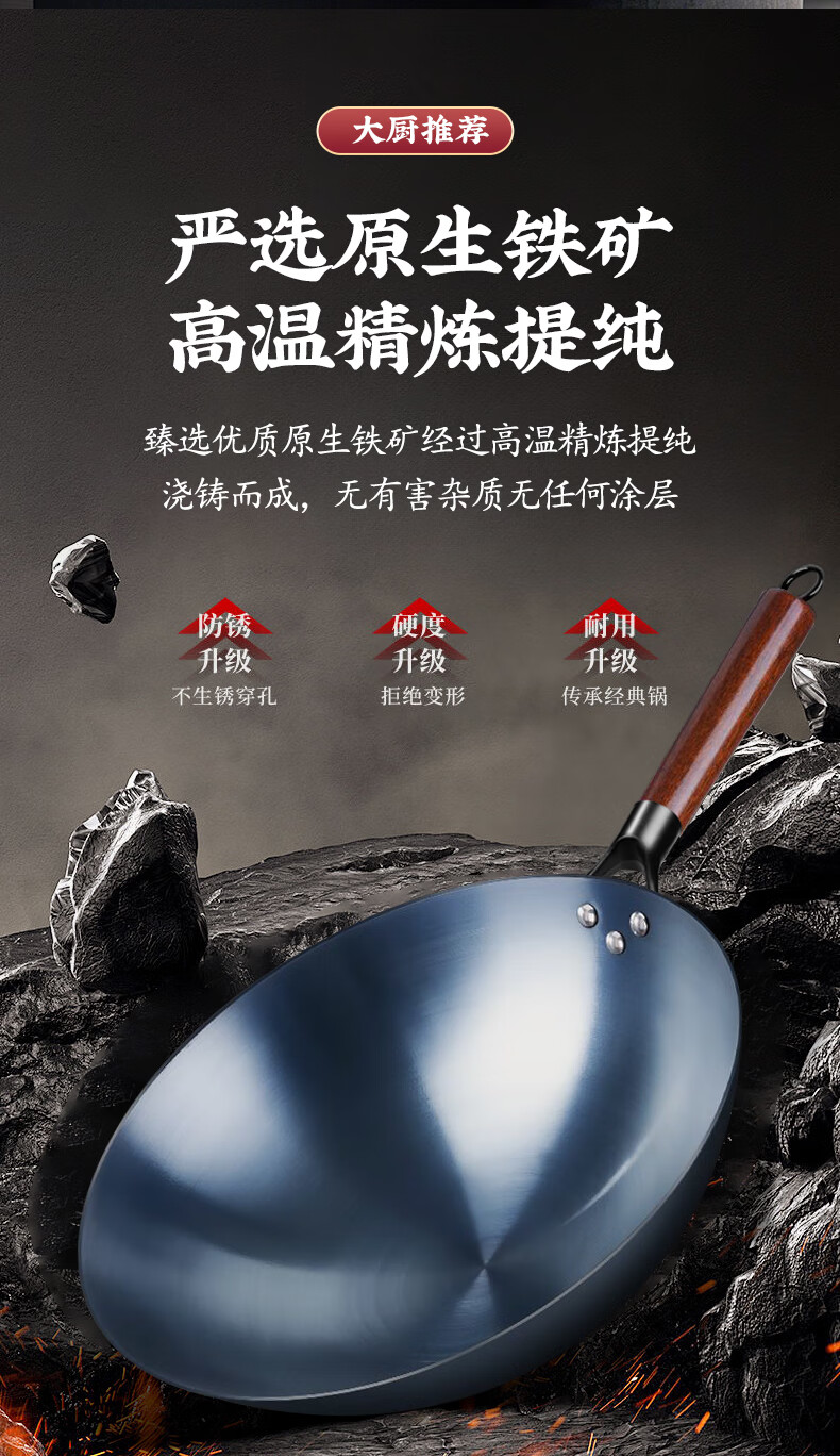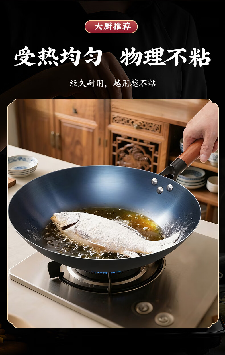 Quanpinwu iron wok, uncoated, non-stick wok, Zhangqiu, rust-free, round bottom, big belly, gas stove, stir-fry 34