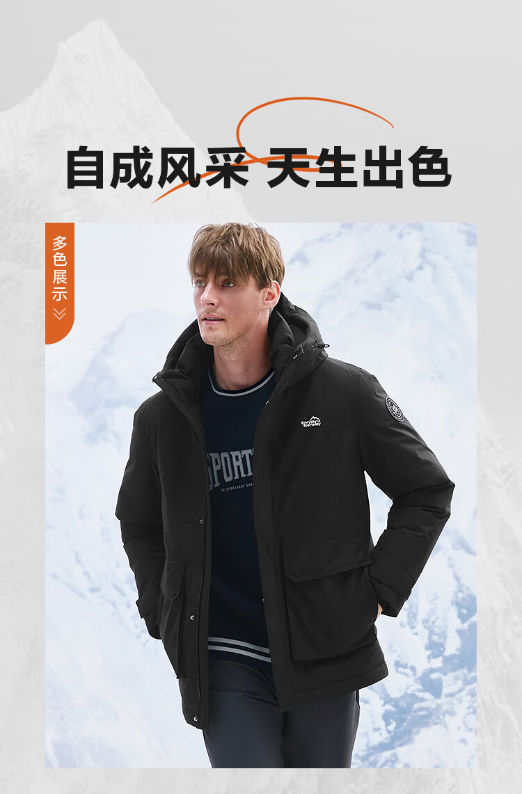 Heilan House three-proof hooded down jacket for men, 90 down, high quality down, 129-165g down jacket, men's winter jacket