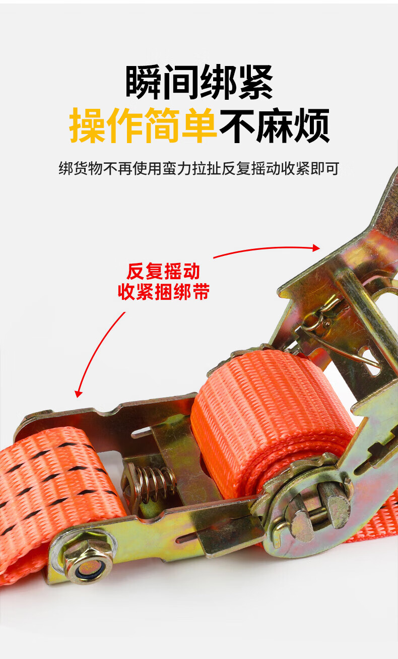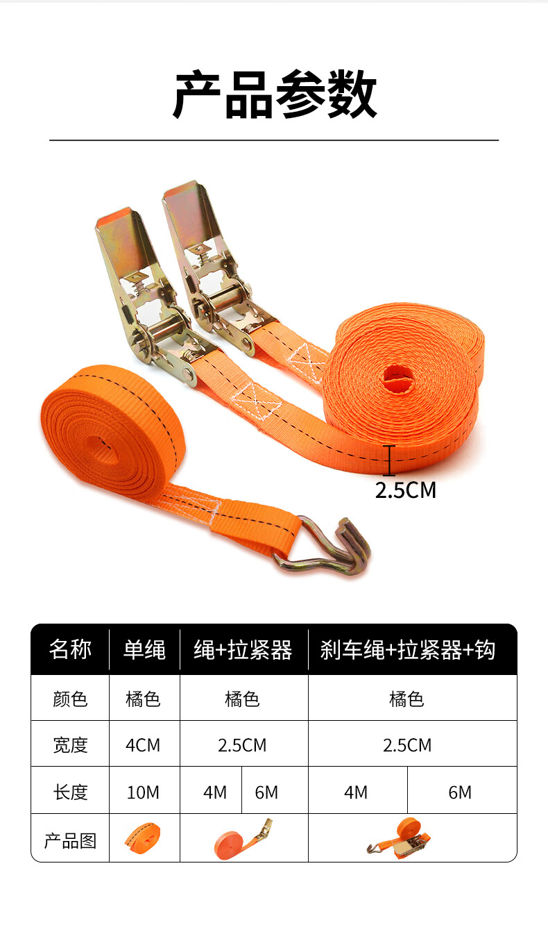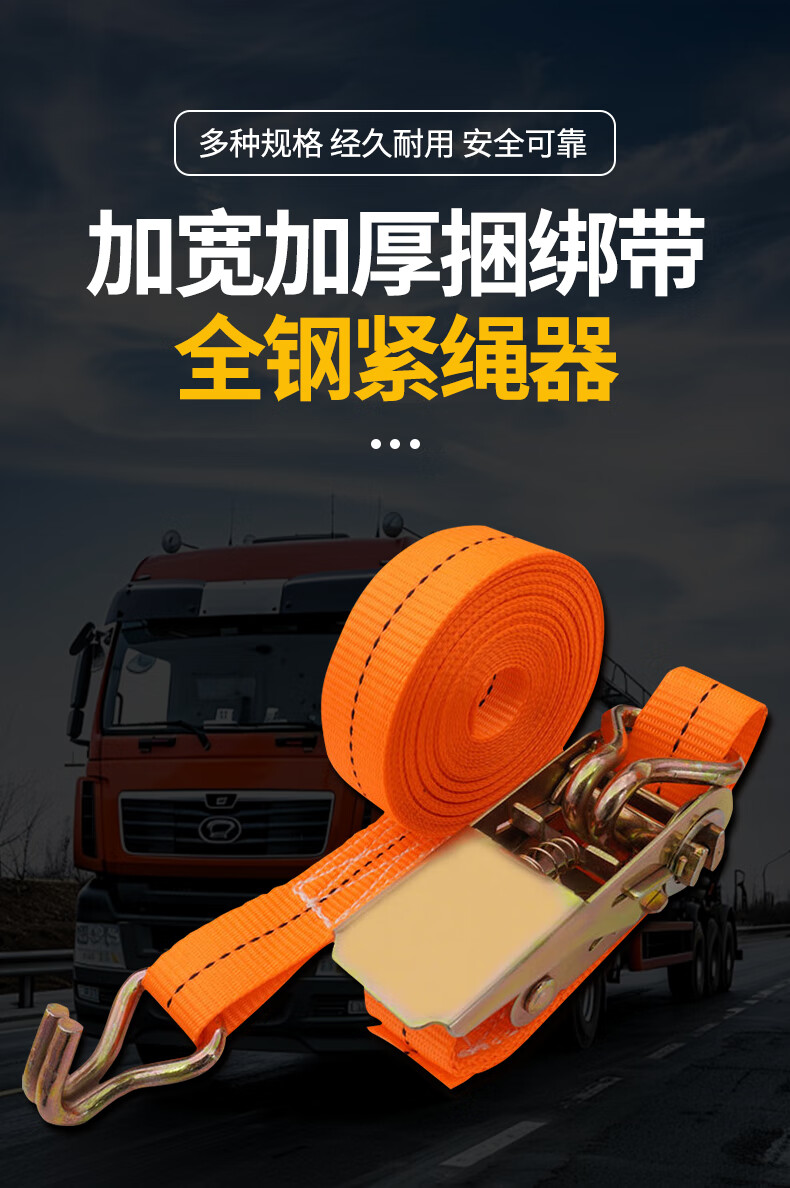 Jiuqiangu cargo binding belt, truck transport cargo tightening strap, truck rope tightener, rope tensioner, trailer rope ratchet strap brake rope 4CM*10 meters
