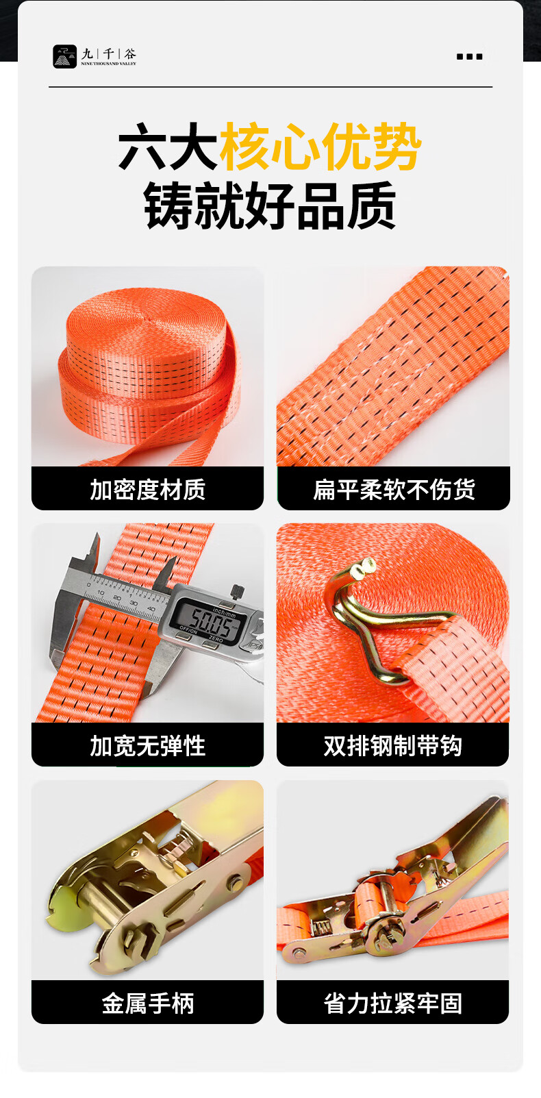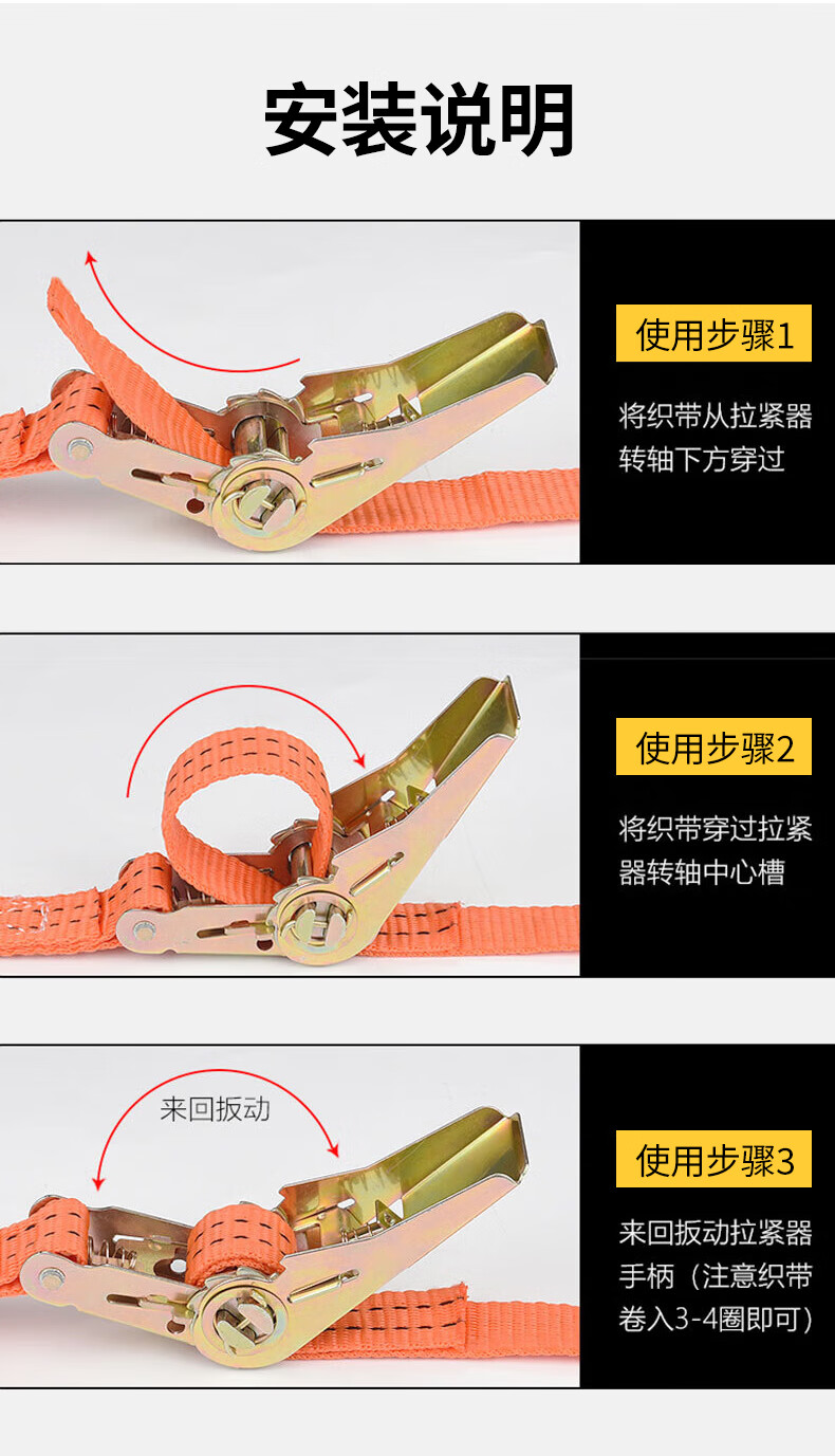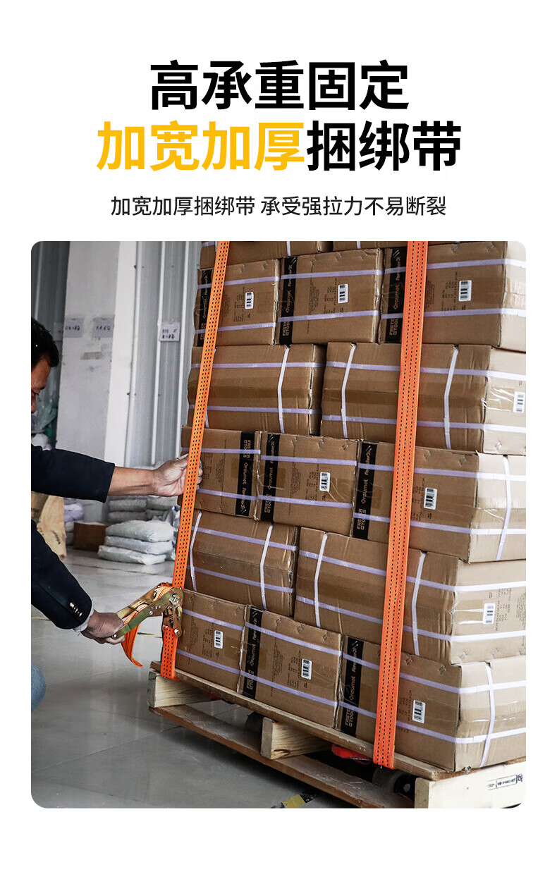Jiuqiangu cargo binding belt, truck transport cargo tightening strap, truck rope tightener, rope tensioner, trailer rope ratchet strap brake rope 4CM*10 meters