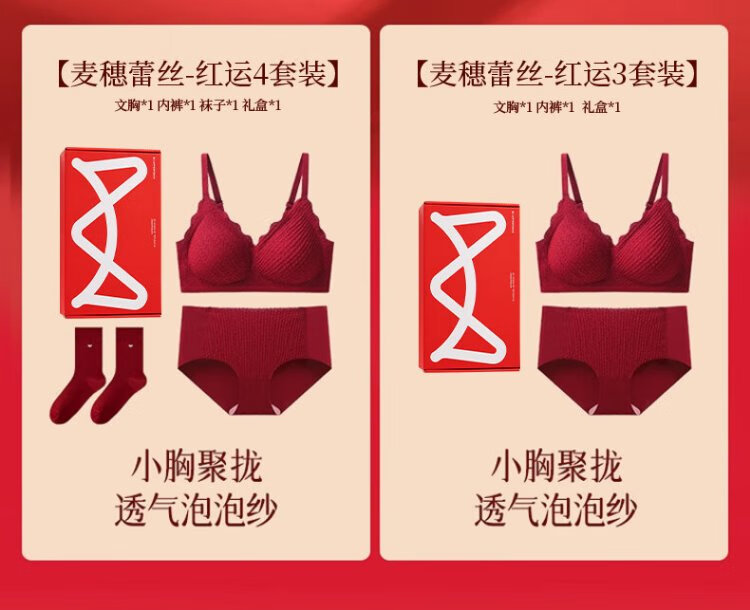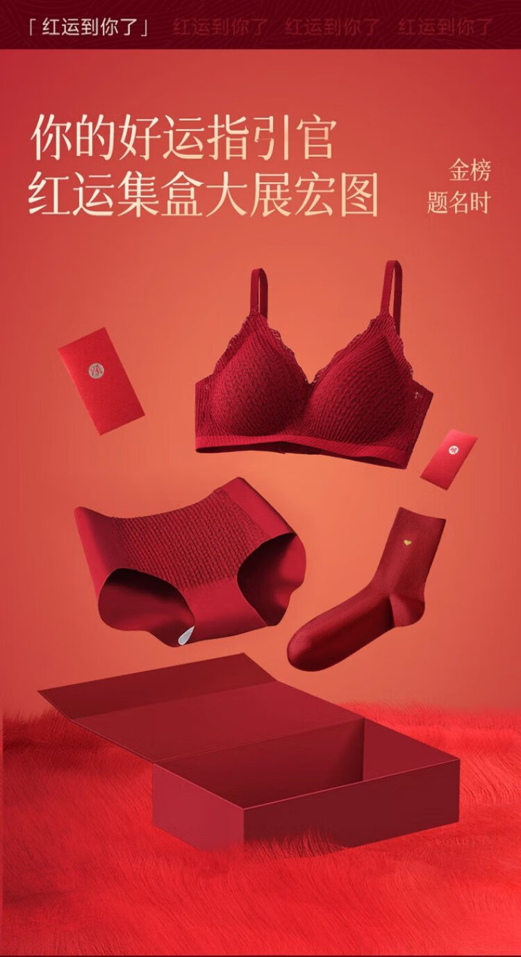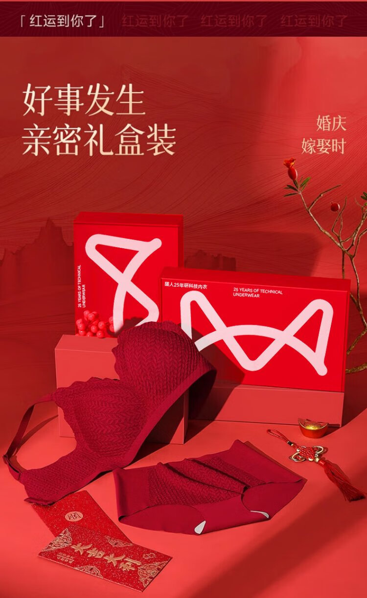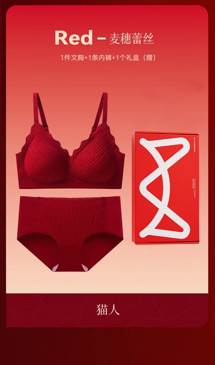 Cat Man Red Zodiac Year Underwear Women's Suit Small Breast Push-Up Wedding Festive Bridal Bra Bra Underwear Socks Gift Box