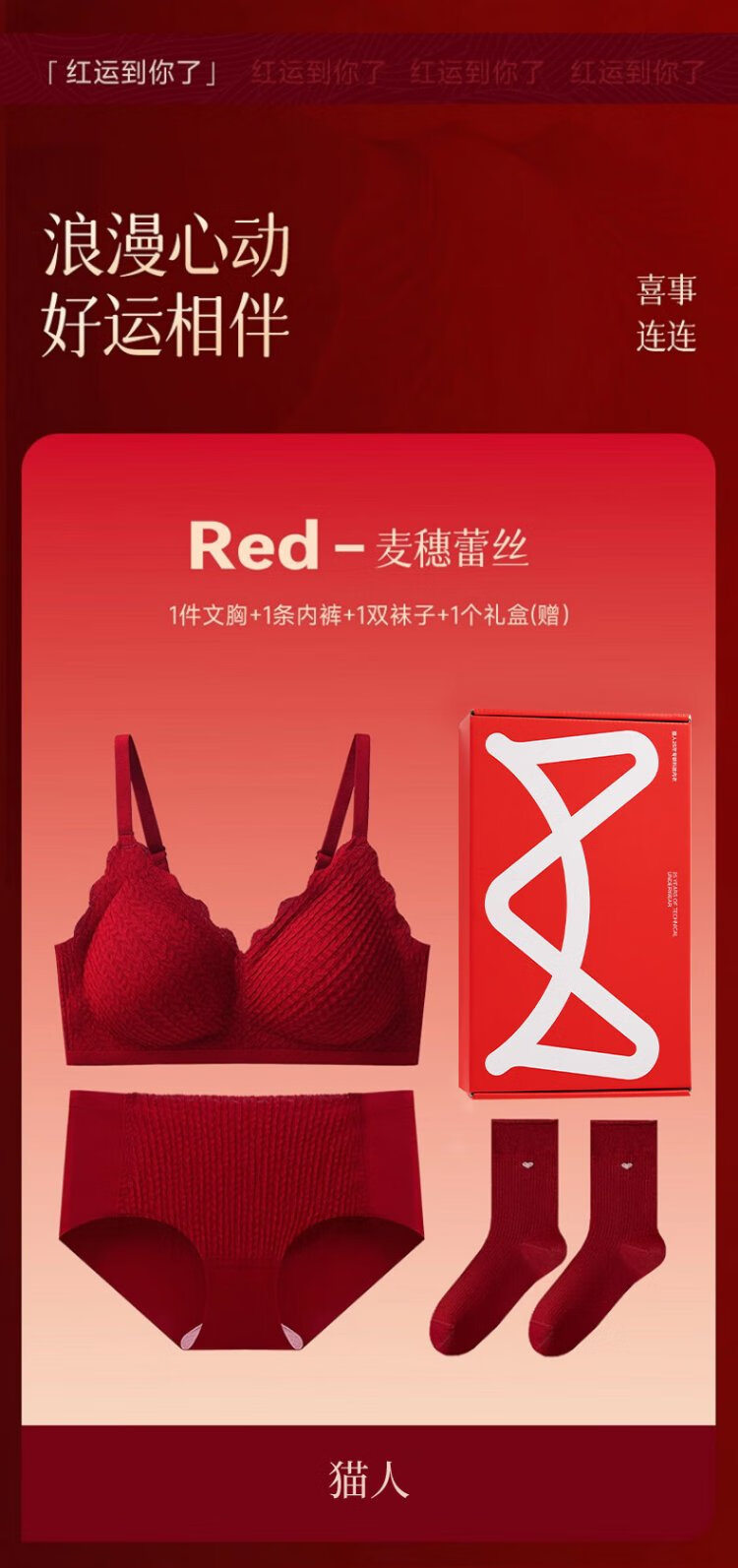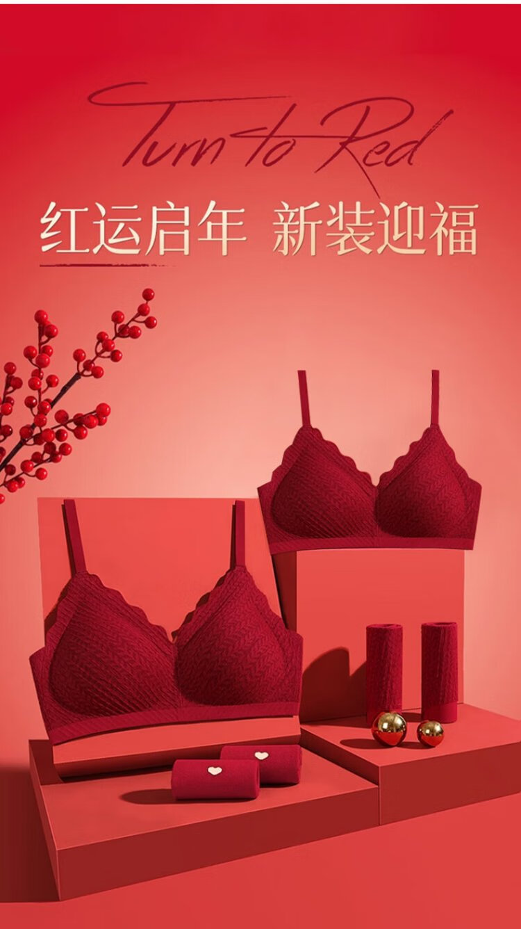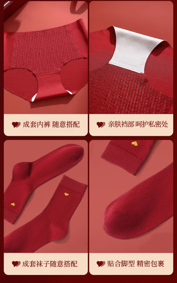 Cat Man Red Zodiac Year Underwear Women's Suit Small Breast Push-Up Wedding Festive Bridal Bra Bra Underwear Socks Gift Box