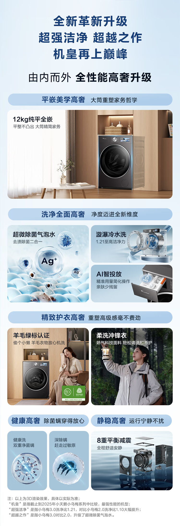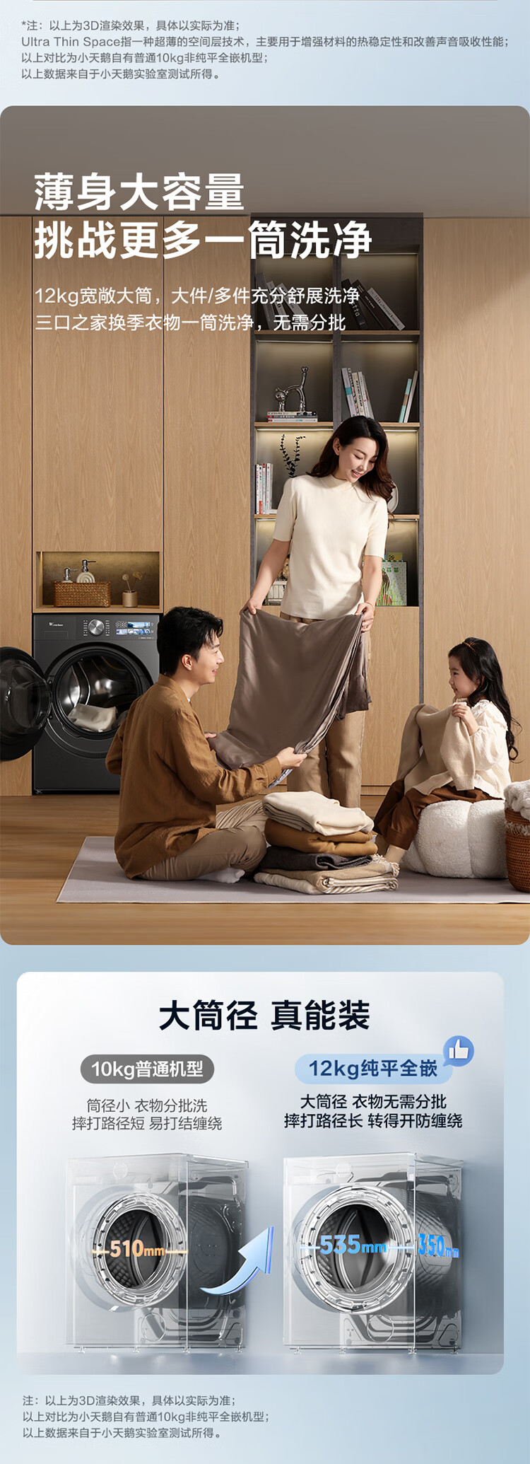LittleSwan Xiaowumei 3.0 High Luxury Edition Front-loading Washing Machine Fully Automatic 12KG Flat Flat Large Capacity TG12VE40PRO Trade-in State Subsidy JD.com Self-operated