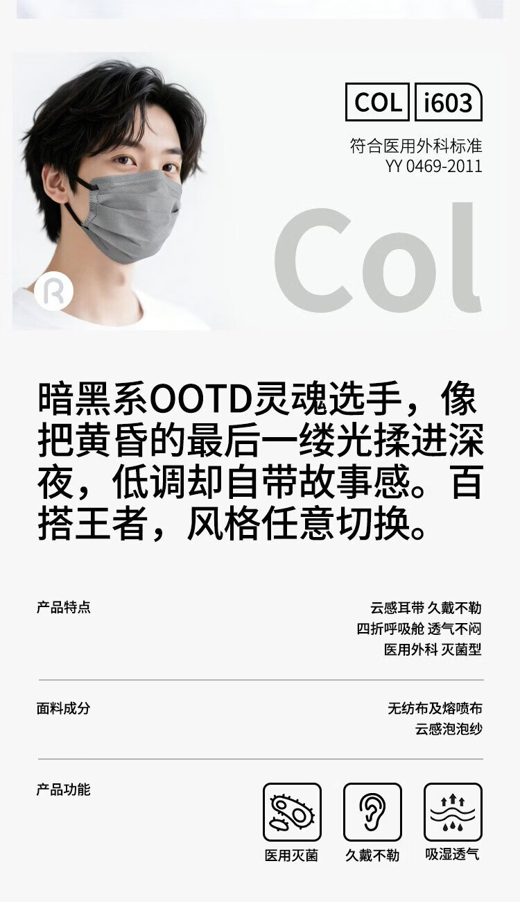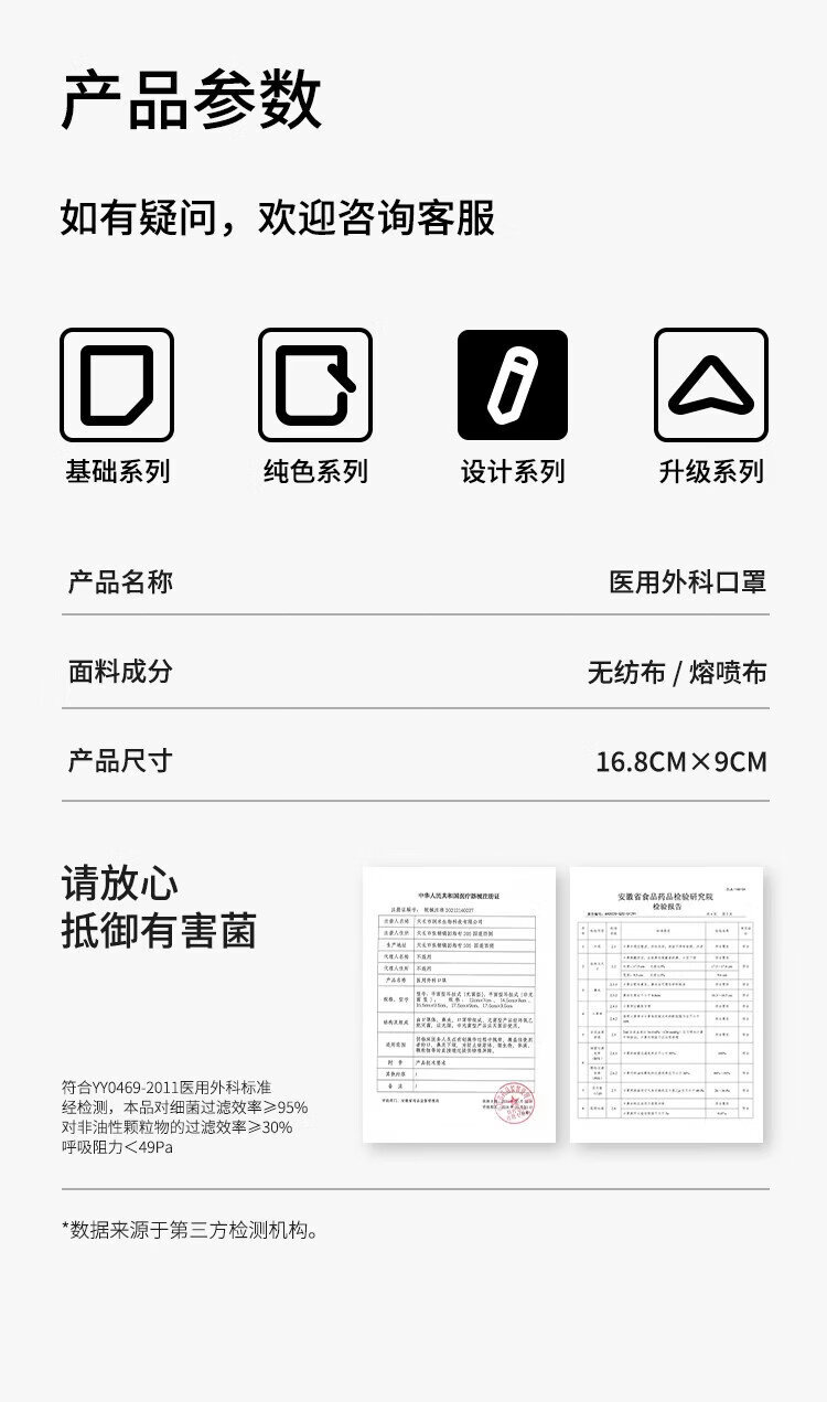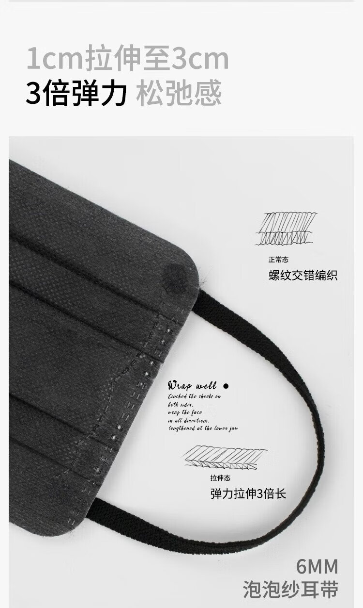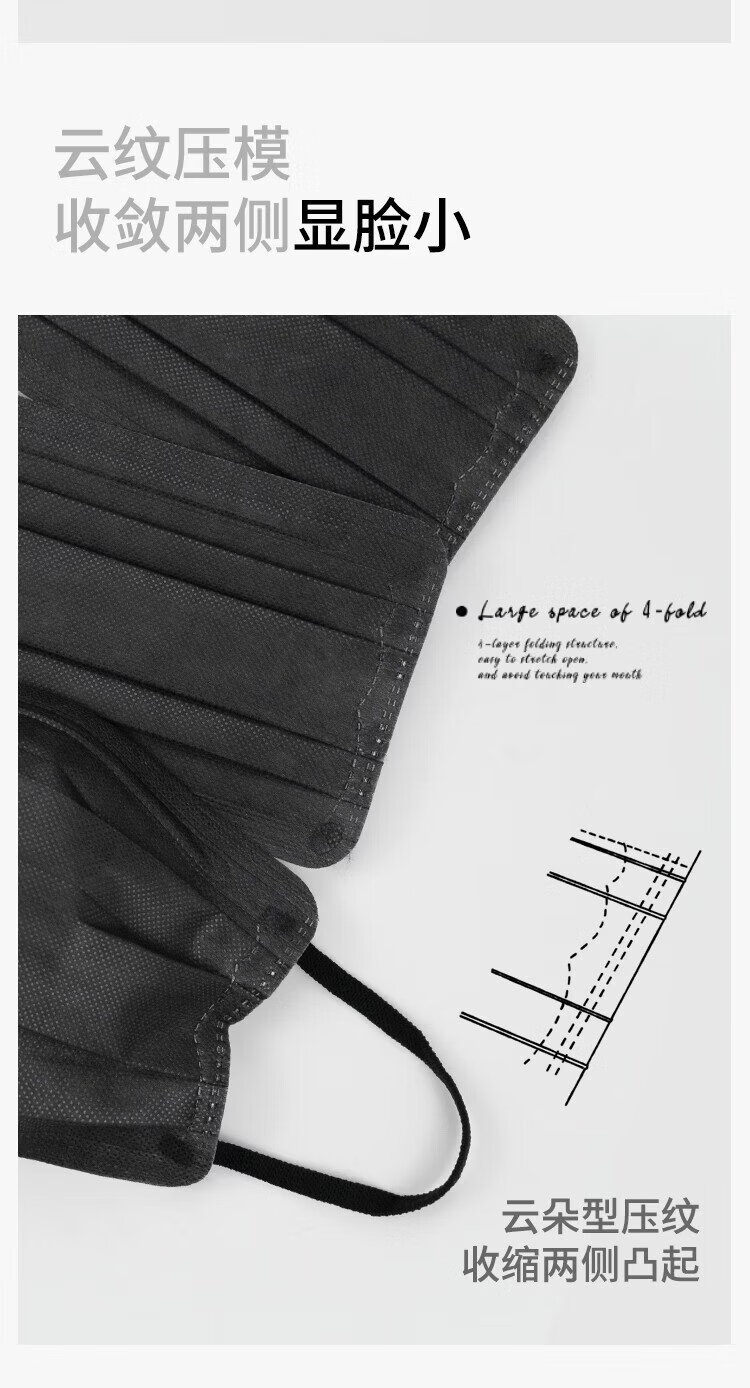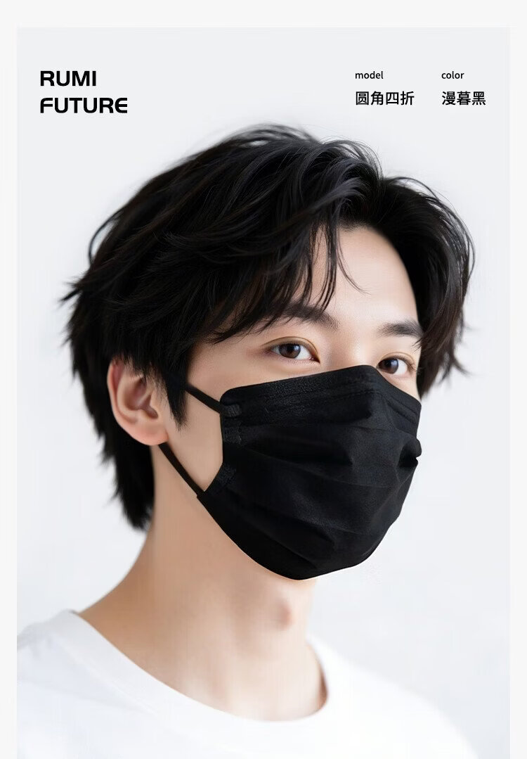 Runmi Biotech Four-fold Disposable Medical Surgical Mask Personalized Black Adult Sterilization Grade Manmu Black/50 Pieces
