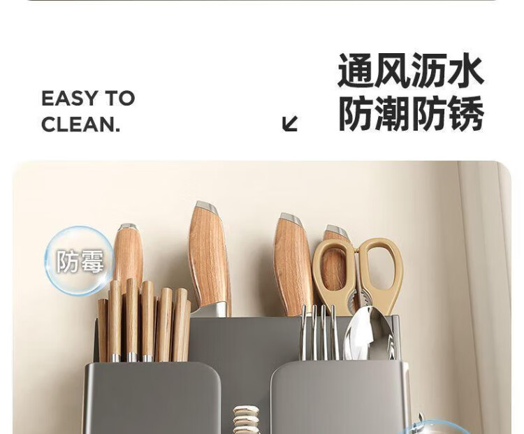 Jibaiju kitchen storage rack wall-mounted punch-free chopstick tube kitchen knife spoon chopsticks all-in-one multi-functional kitchen storage rack
