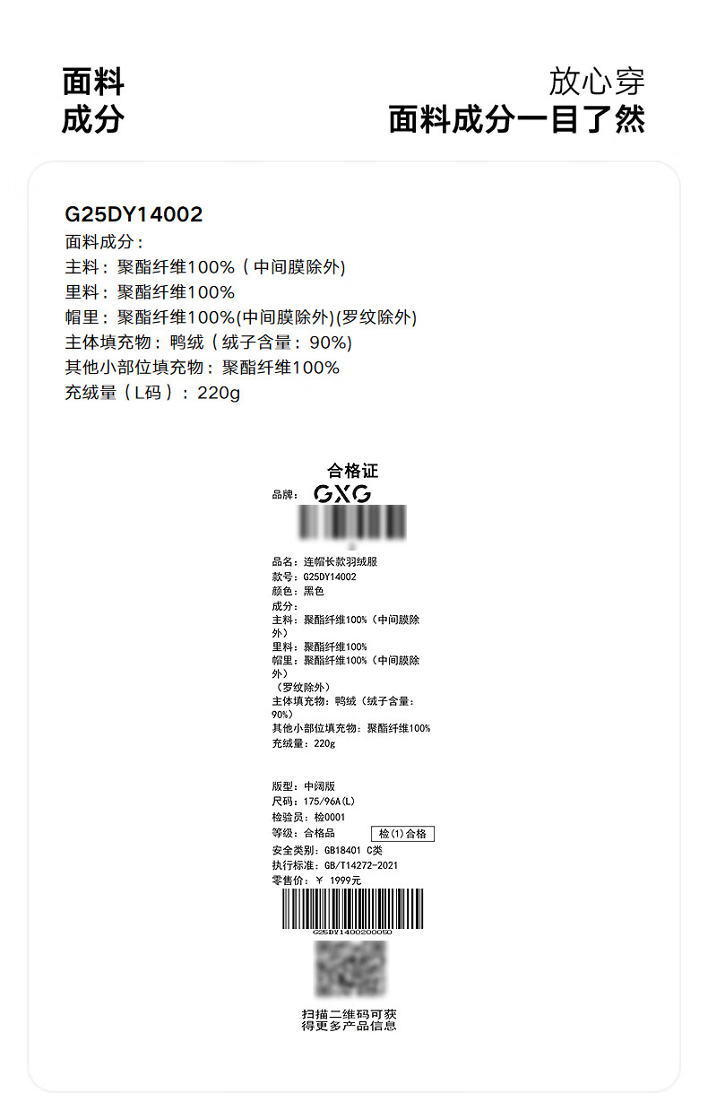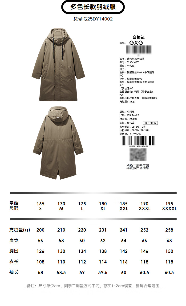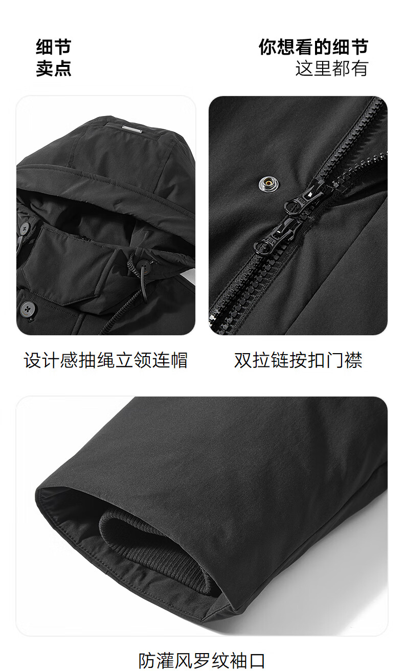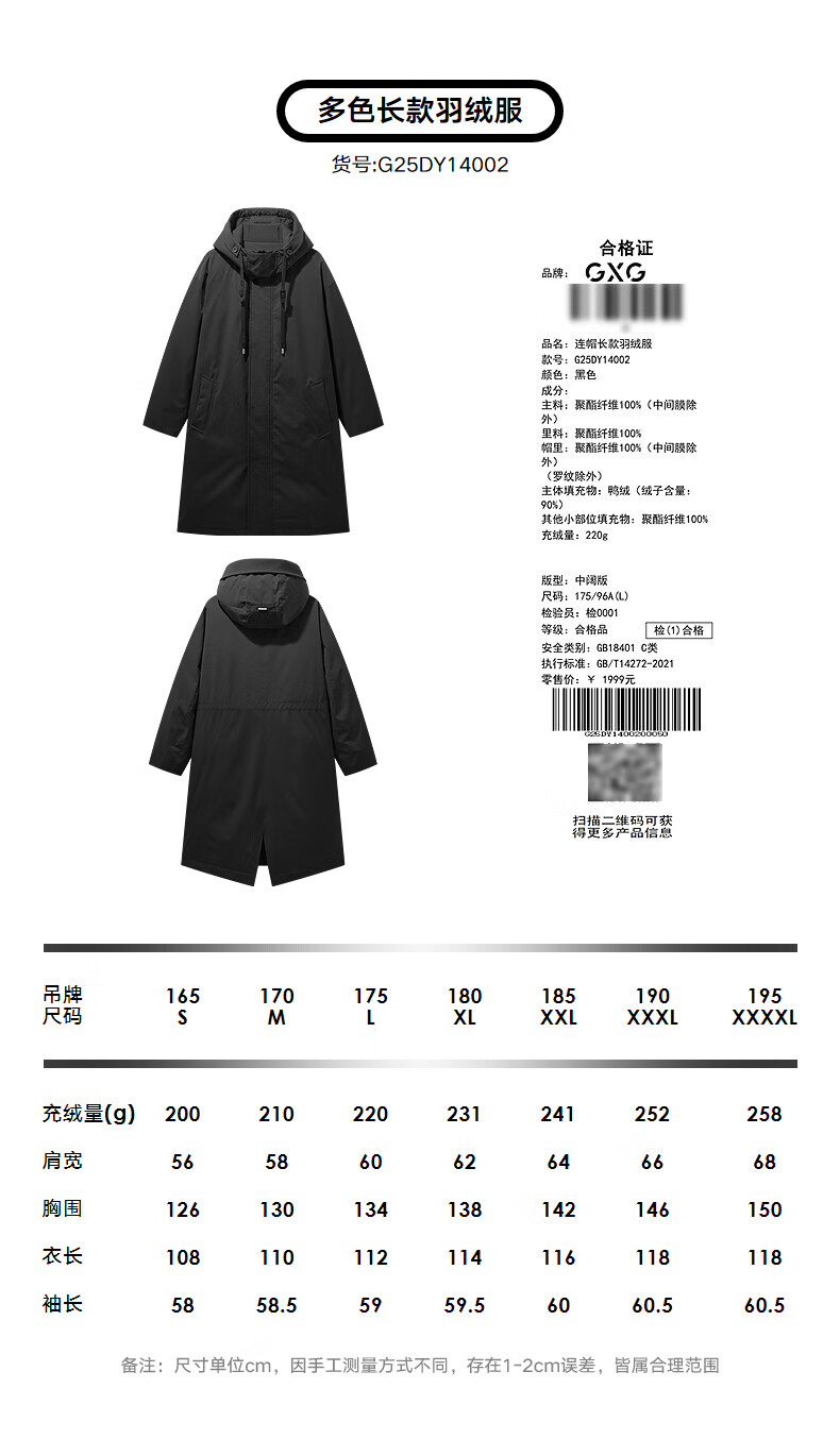 GXG Men's Long Down Jacket Multicolor Windbreaker Design Thick Jacket Black L