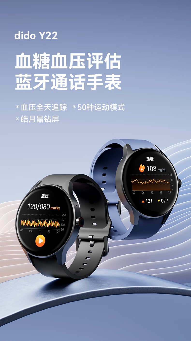 Dido Y22S Pro blood sugar and blood pressure smart watch ECG health research Bluetooth call body temperature blood oxygen heart rate monitor health management men and women sports middle-aged and elderly people