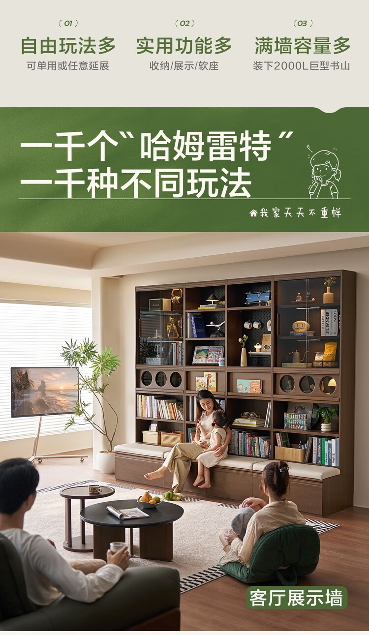 Lin's home hole board deck bookcase integrated whole wall full living room display cabinet storage bookshelf UY1X
