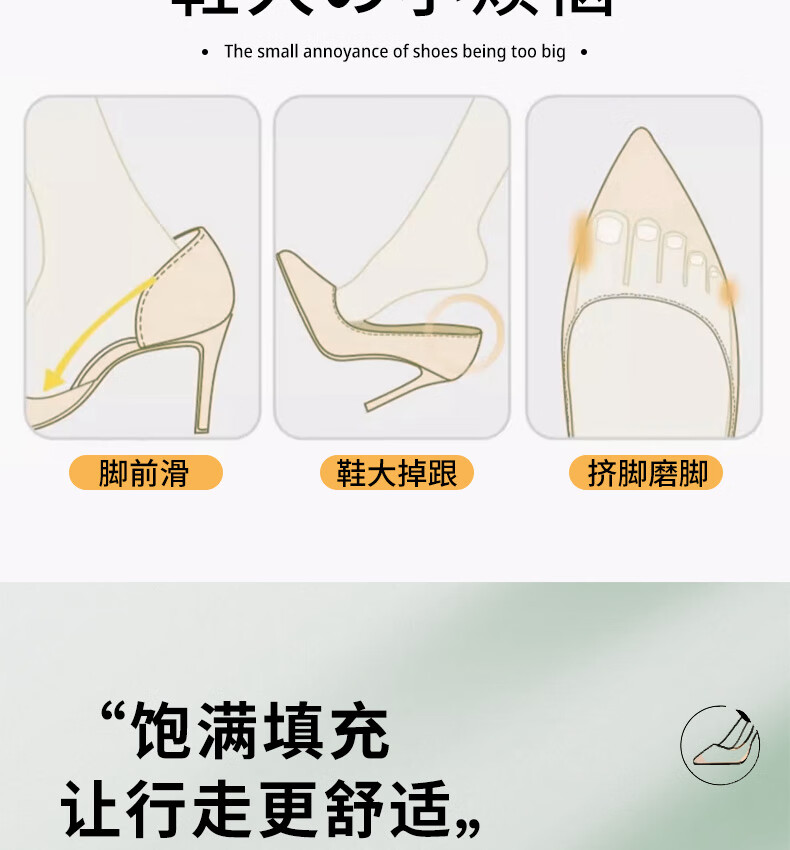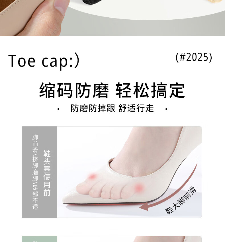 Huabaochi sponge toe stuffed leather shoes high heels filled shrink size shoes big change small toe toe anti-wear half size pad for men and women