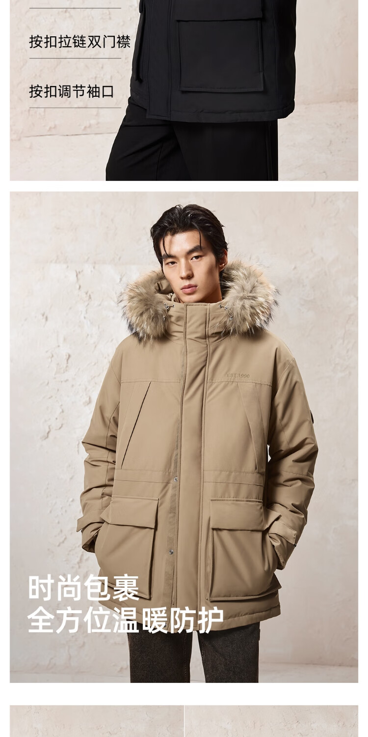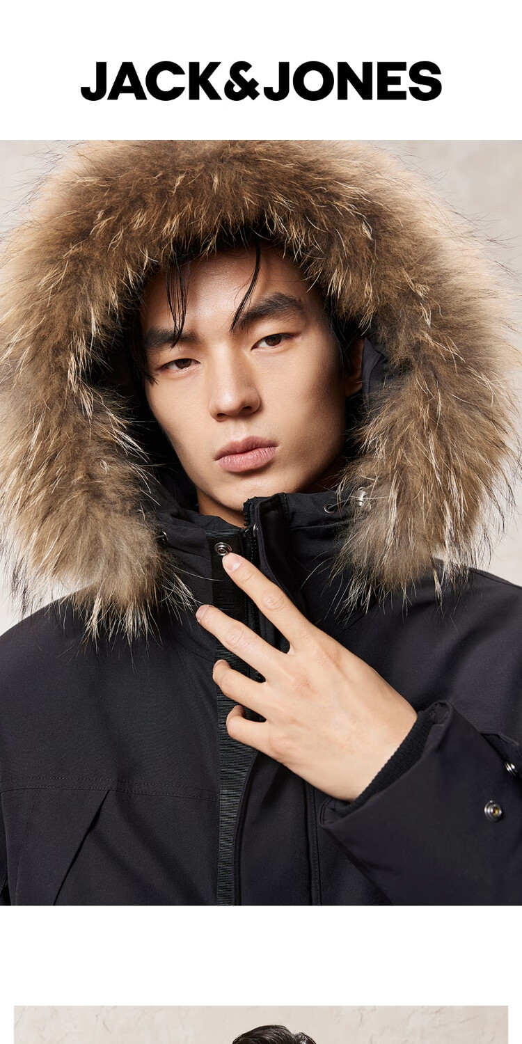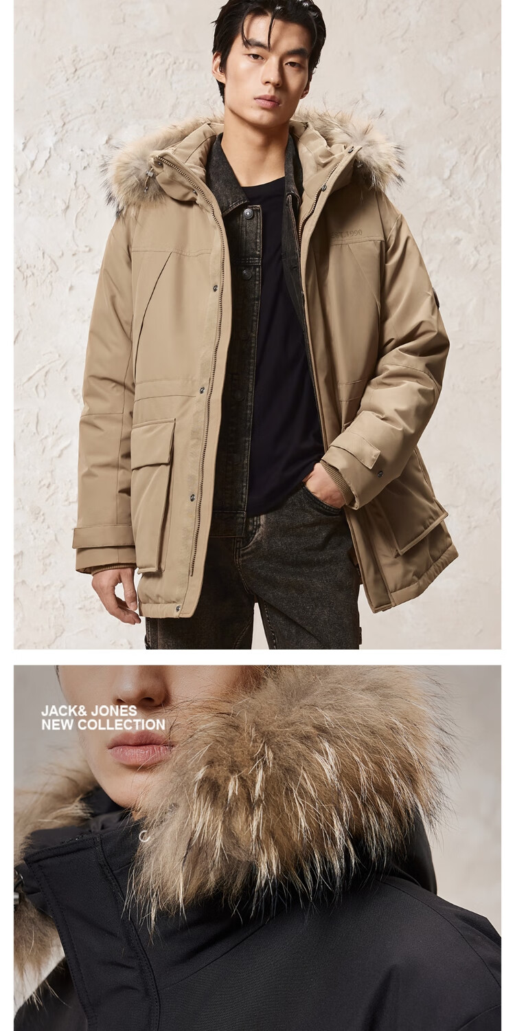 JACK&JONES Water-Repellent Men's Winter Down Jacket Windproof Removable Fur Collar Hooded Loose Jacket 225412030