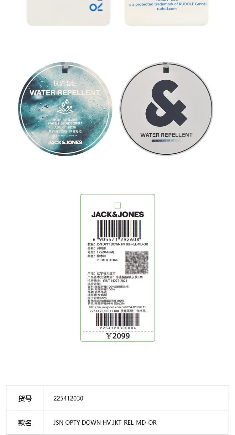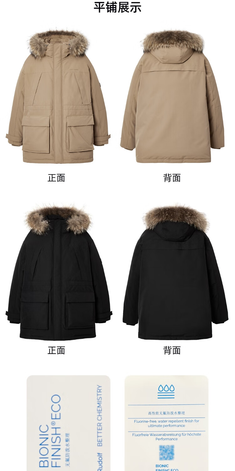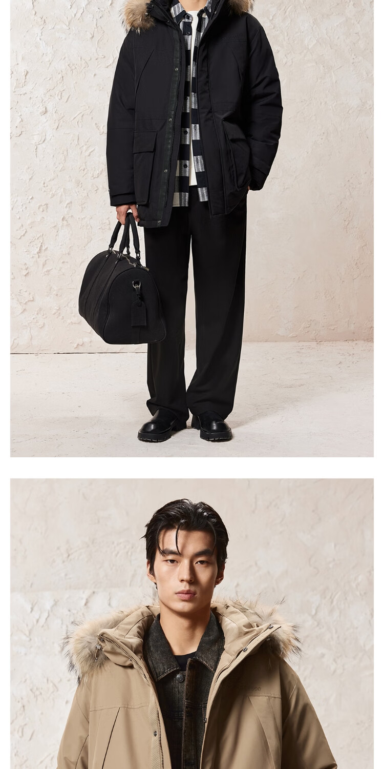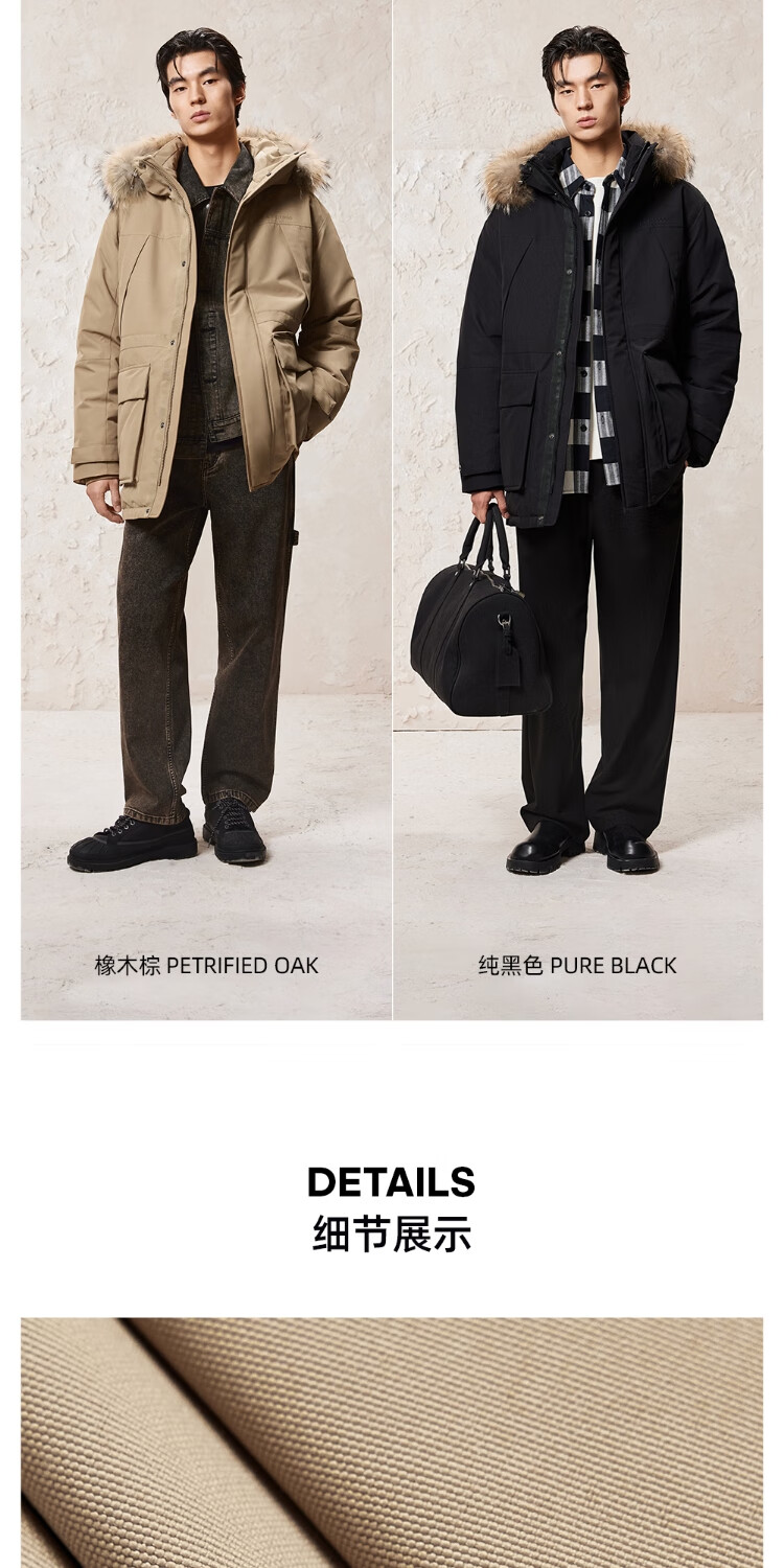 JACK&JONES Water-Repellent Men's Winter Down Jacket Windproof Removable Fur Collar Hooded Loose Jacket 225412030