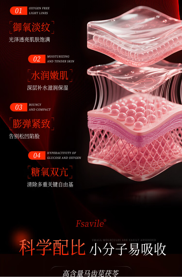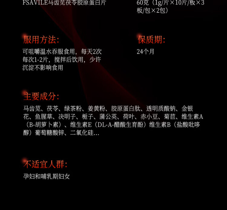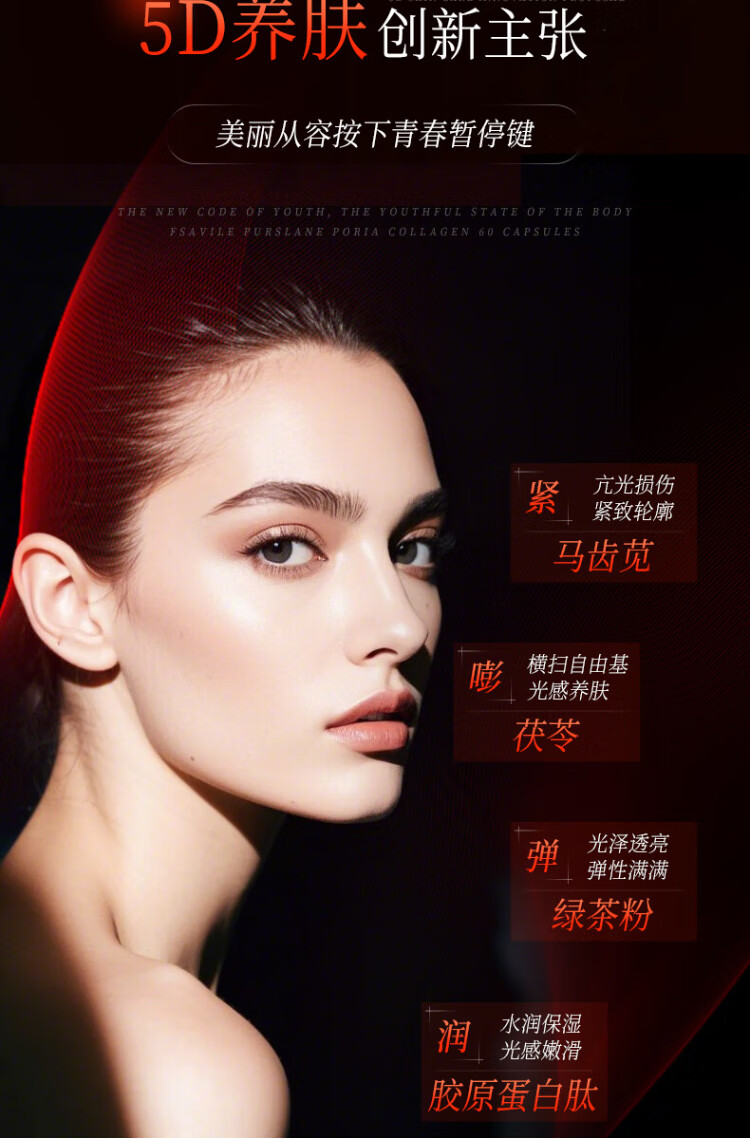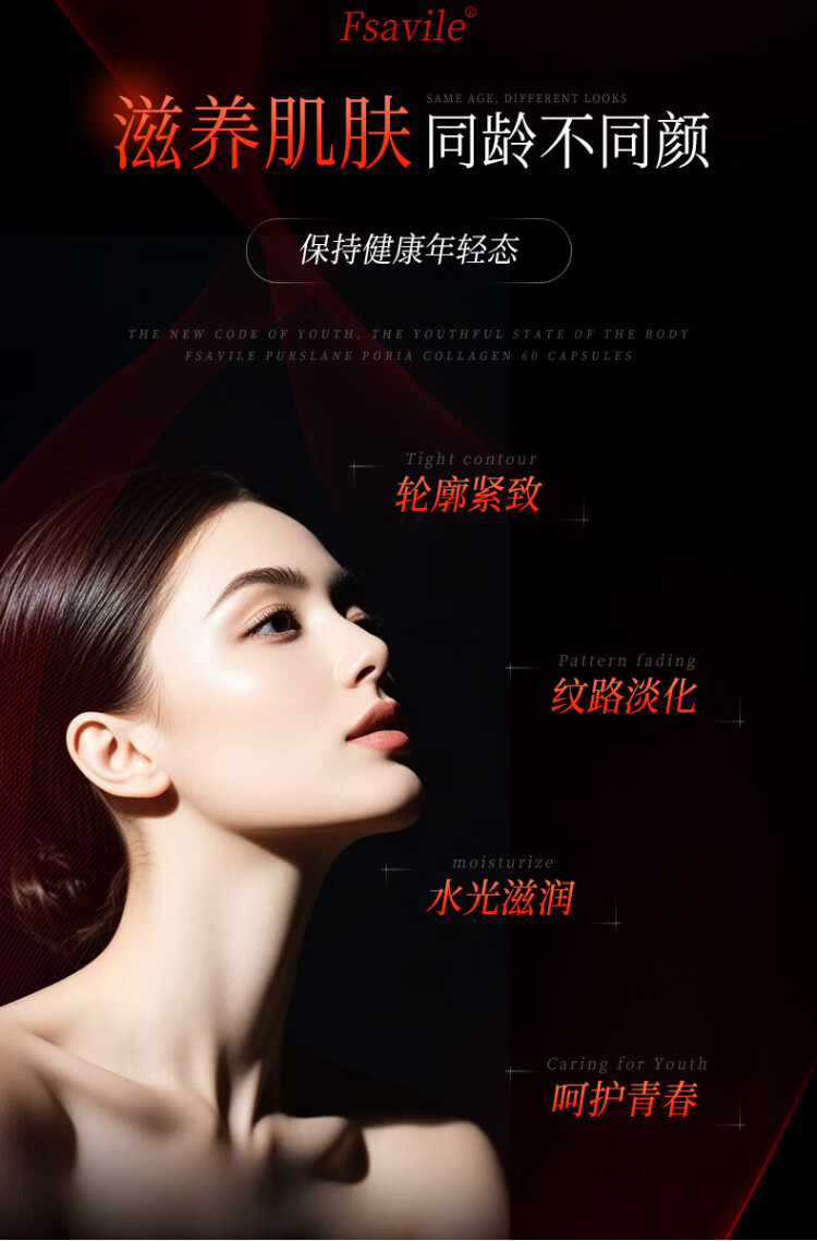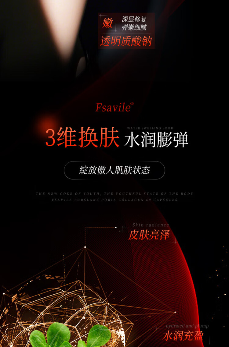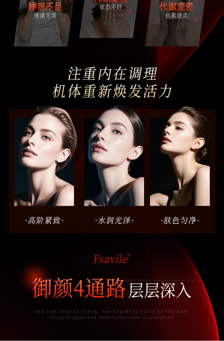 FSAVILE Purslane, Poria, Collagen Peptide, Firming Skin, Anti-Aging Beauty, Focusing on Skin Aging 60 Tablets
