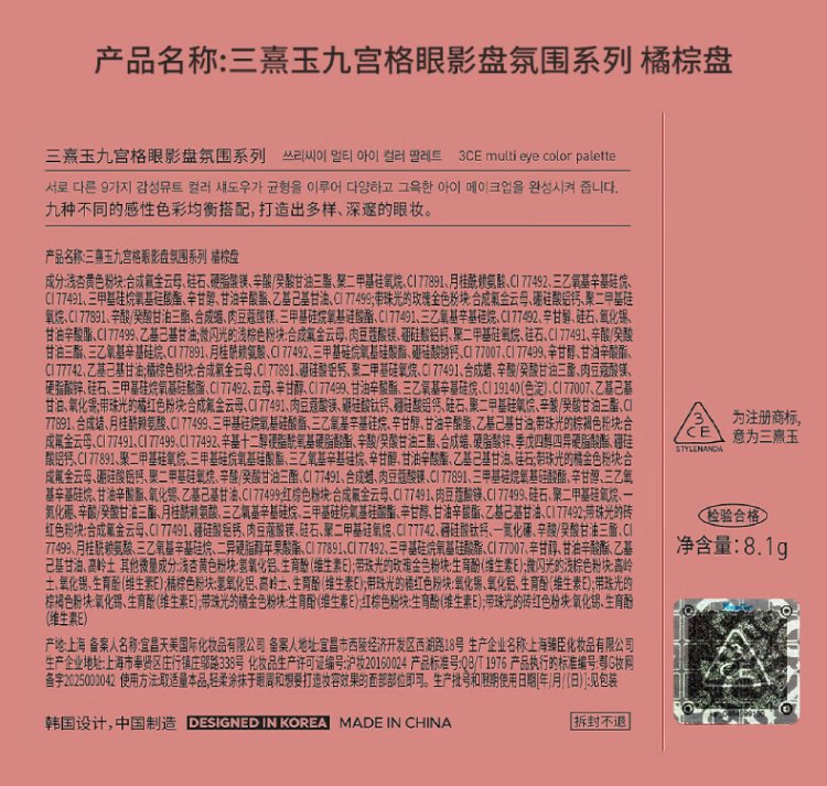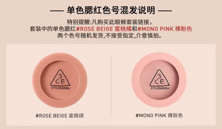 3ce Eye and Cheek Two-piece Set Eyeshadow Jiugongge Blush Peach Orange Set Birthday Gift New Year Gift for Girlfriend