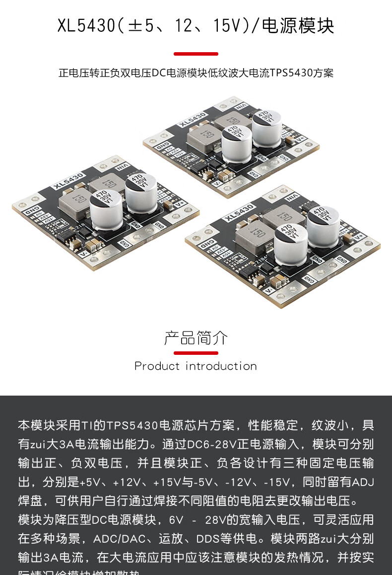 YourCeeXL5430- 5V positive voltage to positive and negative dual voltage DC power module low ripple and high current TPS5430 solution