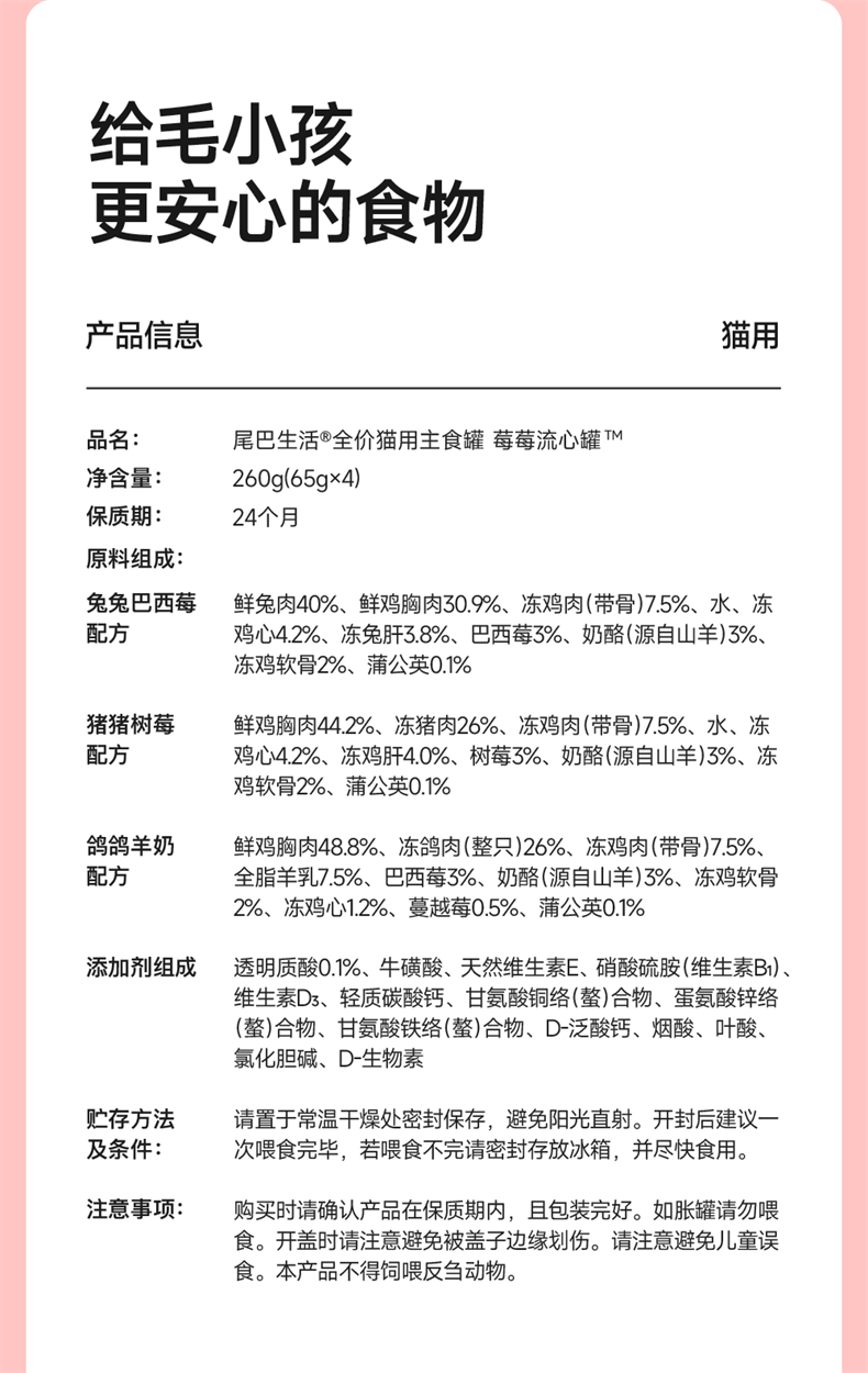 Tail life pigeon goat milk berry canned cat staple food canned adult and young cat wet food nutritional fattening cat canned food 65g*4